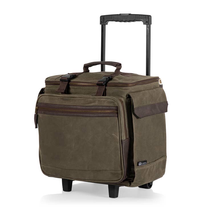 Introducing the somm, a 12-bottle insulated wine bag with rolling cart ideal for wine and beverage-industry professionals, wine tasting trips, and keeping the whole gang hydrated on long weekend getaways. Made of stylish and durable waxed canvas, this wine carrier protects your vino with removable interior bottle dividers. With two locking clasps to keep contents secure, large front and side pockets for storing picnic snacks or valuables, and a handy push button release trolley, there’s no easier way to tote 12 bottles of the good stuff.