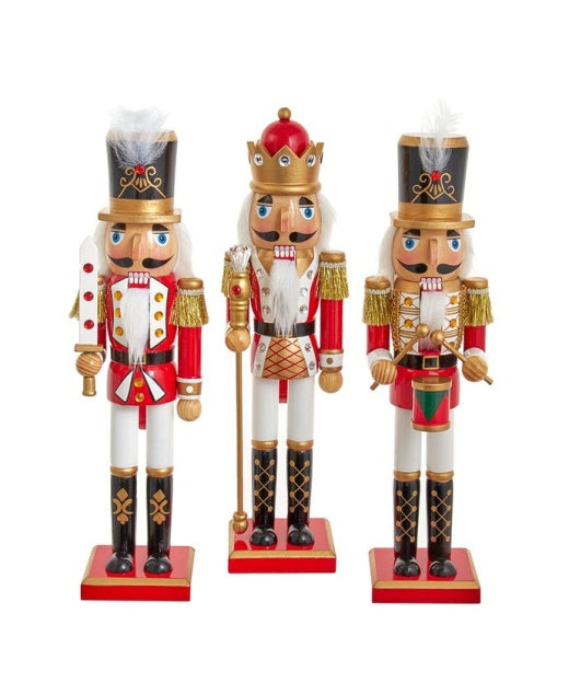 Red & White Soldier and King Nutcracker 15"
