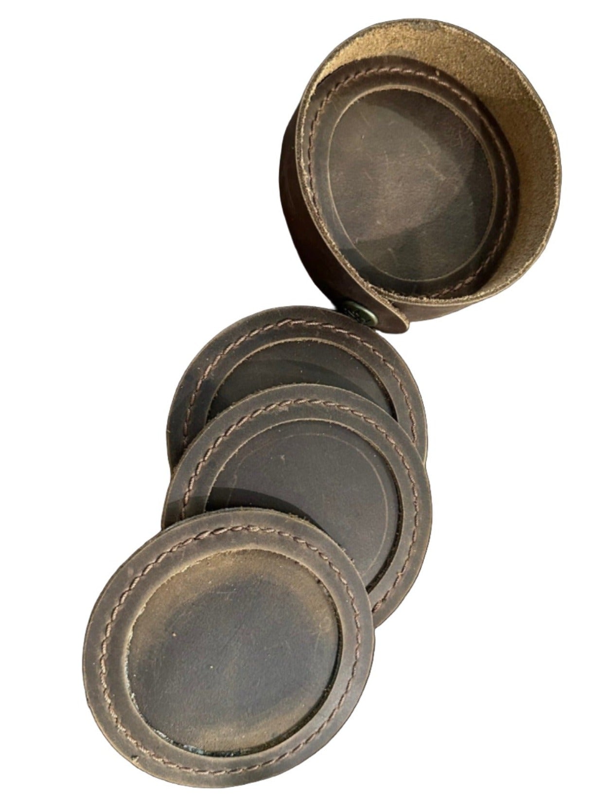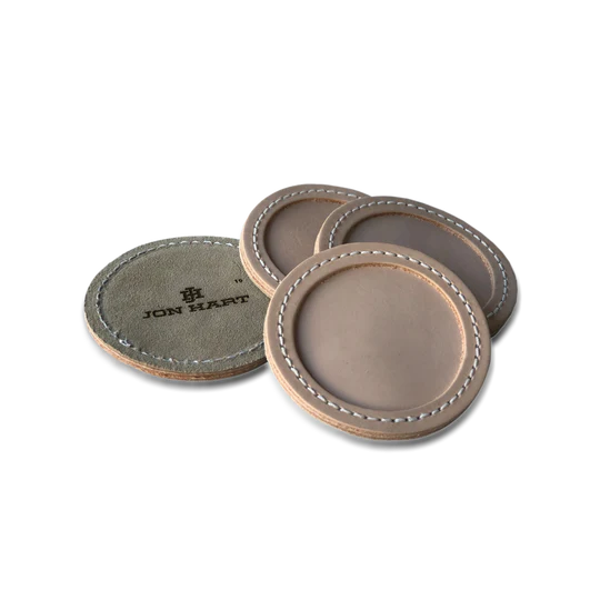 This sophisticated Coaster Set makes the perfect table topper for any dining room, coffee table, or conference room. Add your unique monogram to each individual Coaster and snap them together with the handy leather holder.