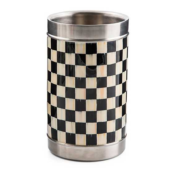 Give your home bar the stylish touch of our most popular pattern. Made of stainless steel with an enamel coating of our color-dragged checks, the 3260 Courtly Check® Wine Cooler holds a bottle of your favorite vintage. Pair it with a set of our hand-painted wine glasses for a memorable gift, or use it to hold a sunny bouquet of fresh flowers.
