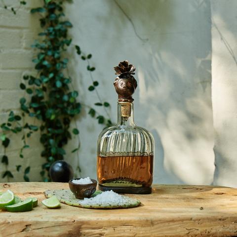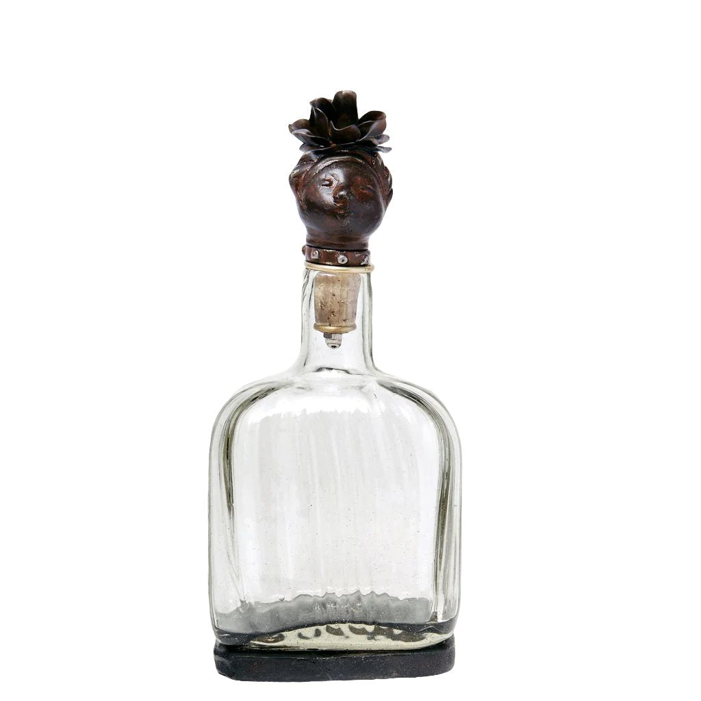 Mouth blown fluted glass decanter with wax cast iron base and the face of Frida...finally a friend for Tito...
