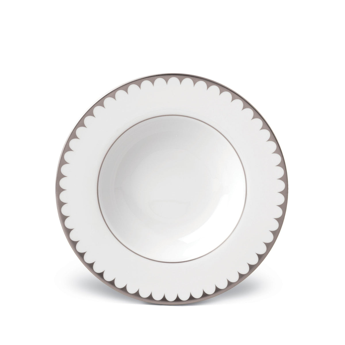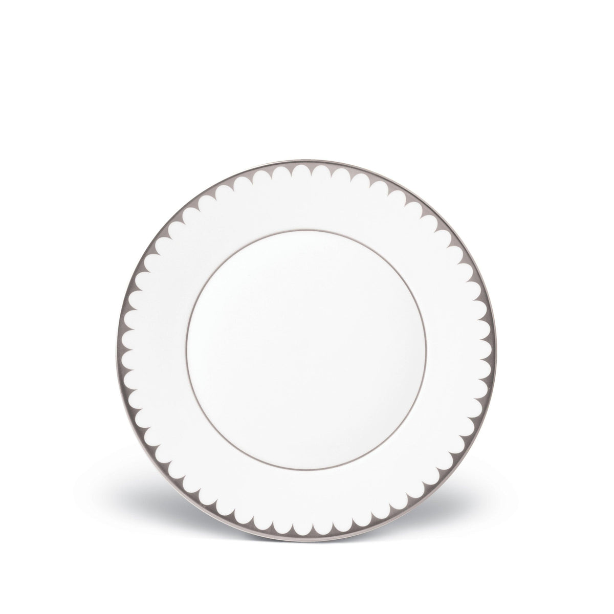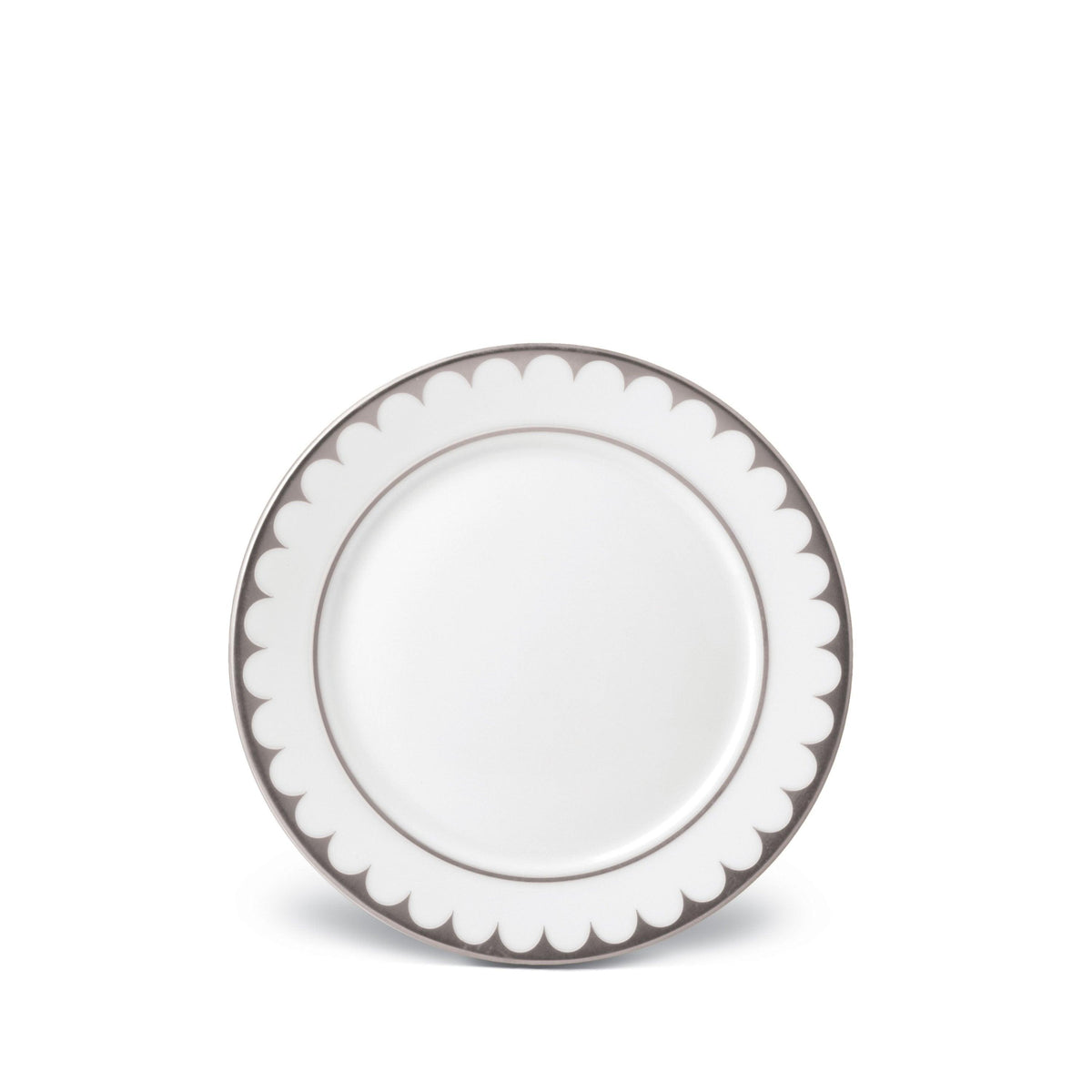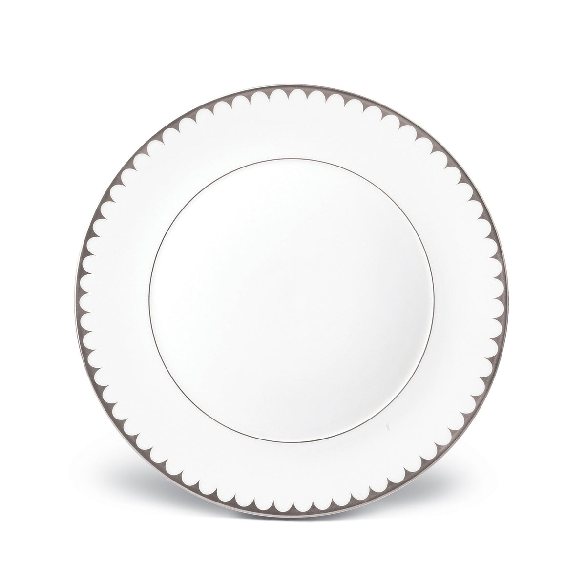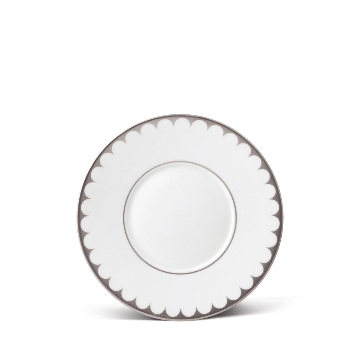 Mirroring the waves of its namesake sea, Aegean Filet dinnerware features a timeless pattern of scales in a delicately scalloped border, hand-applied in 24K gold and platinum.