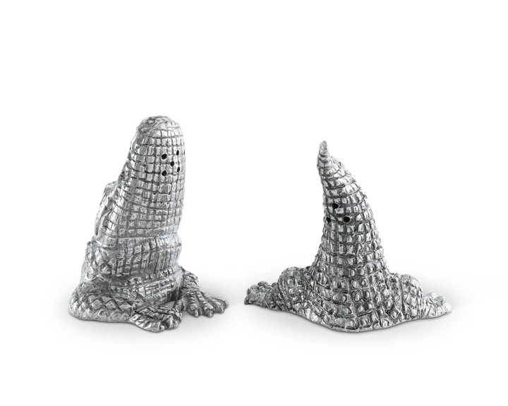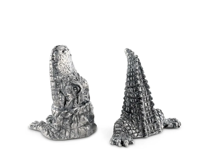 Vagabond House's intricately detailed, cast pewter alligator salt and pepper set will be the talk of your tropical table. Serve salt in the head and pepper in the tail; your guests will be delighted with every shake.