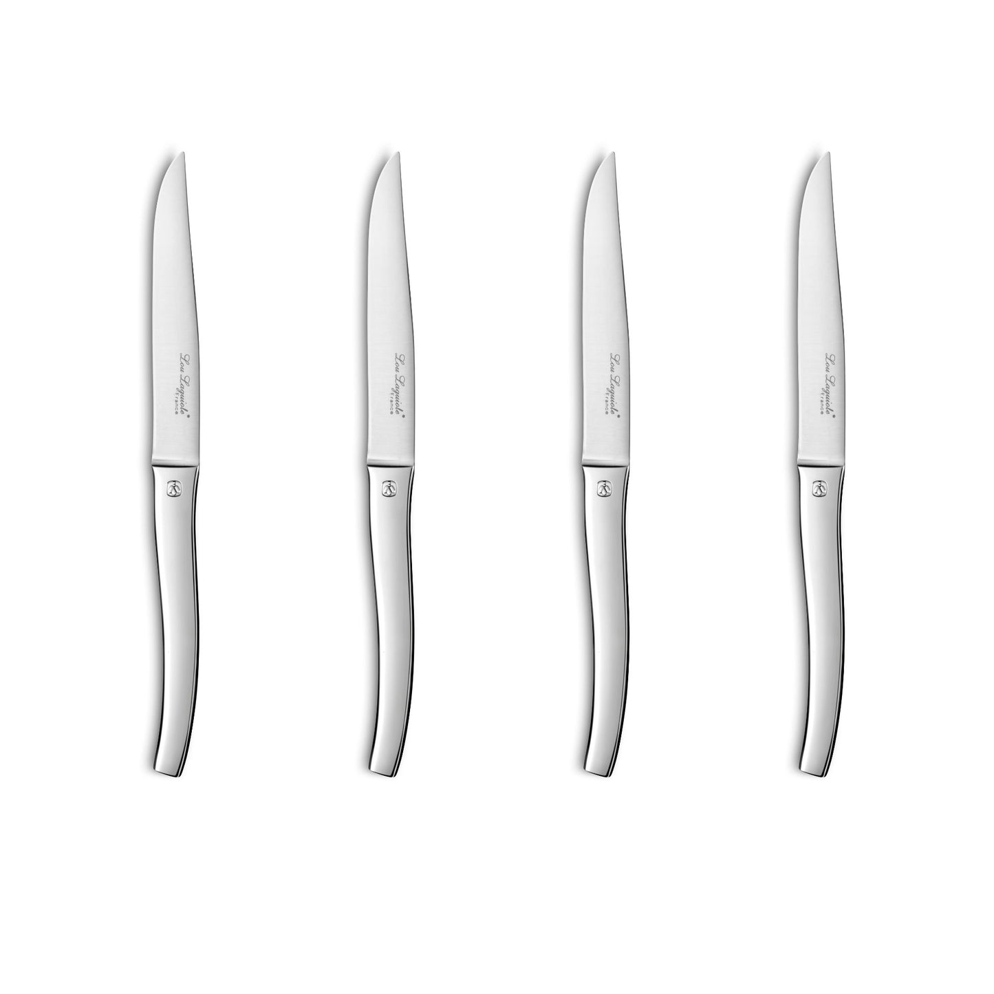 Enhance your dining experience with the Louis Noyer set of four steak knives with a wooden walnut colored handle. Crafted from high-quality materials, these sharp and stylish knives are perfect for any occasion. Whether you're hosting a dinner party or looking for a thoughtful gift, this set has you covered.