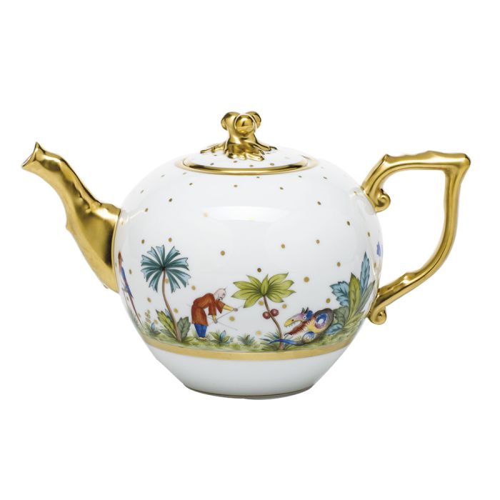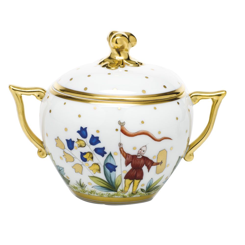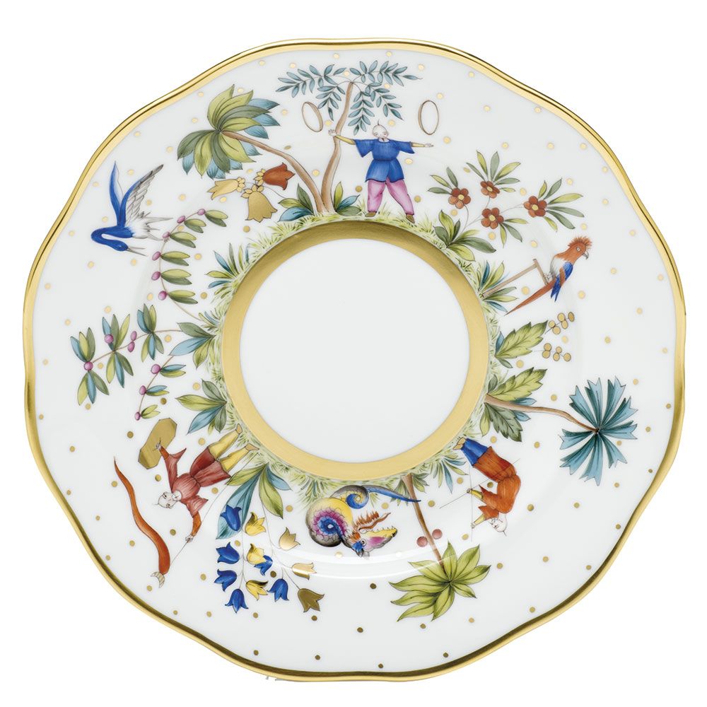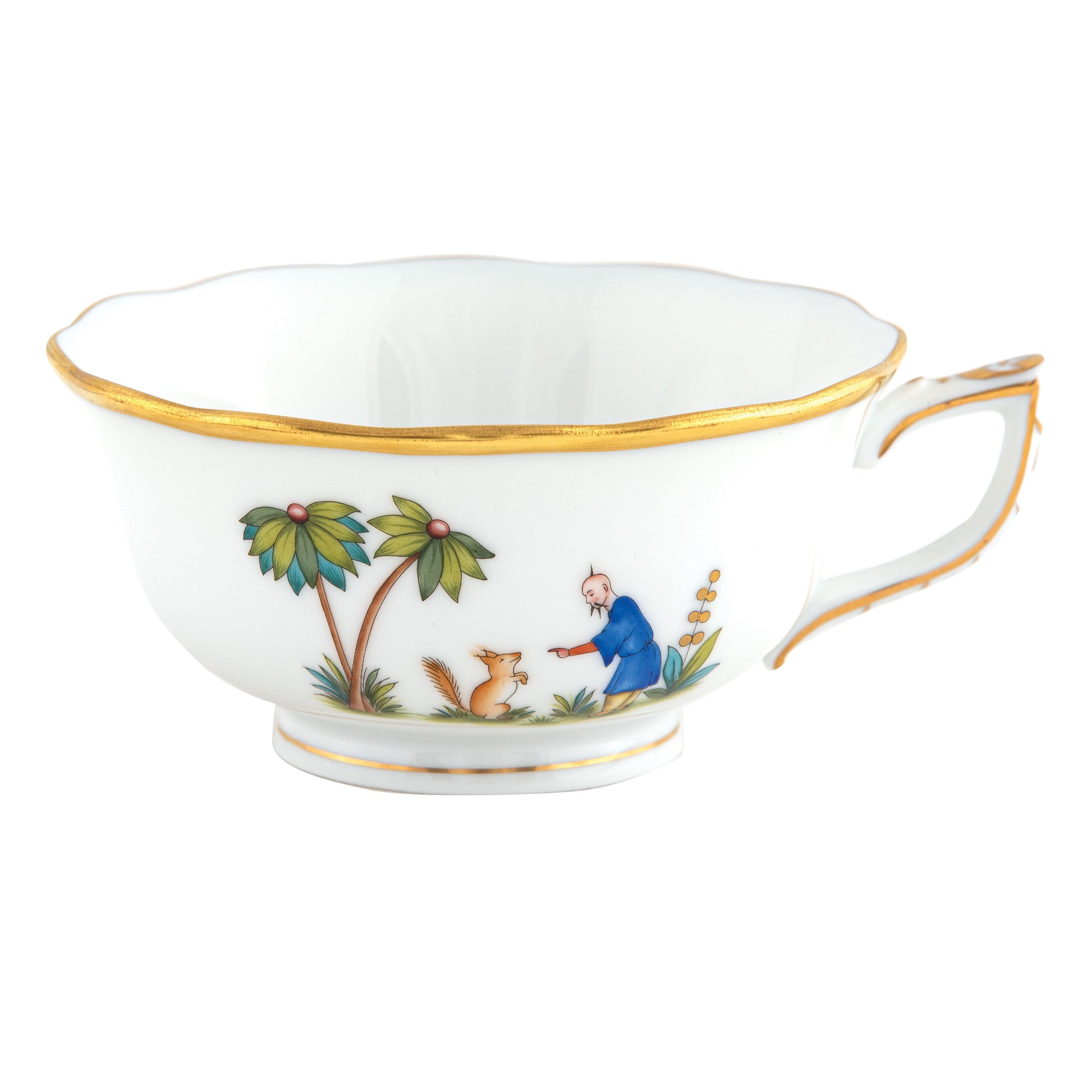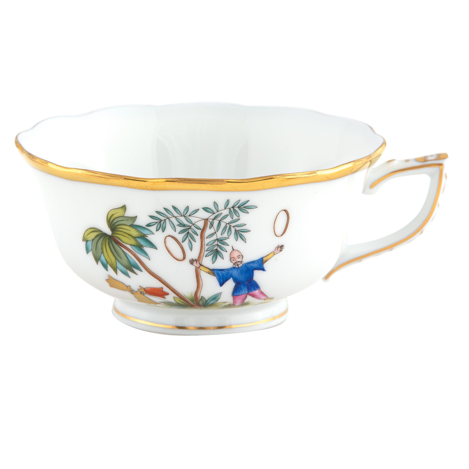 Inspired by a pair of cups designed in Vienna in the early 19th century, the Asian Garden pattern is a superlative example of Chinoiserie design with fanciful, exuberant images of life in an imagined China.