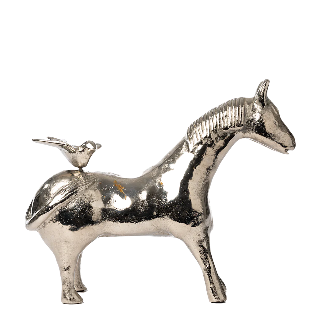 Horse bank with wax cast golondrina . . . stores lucky pennies, hopes, and dreams.