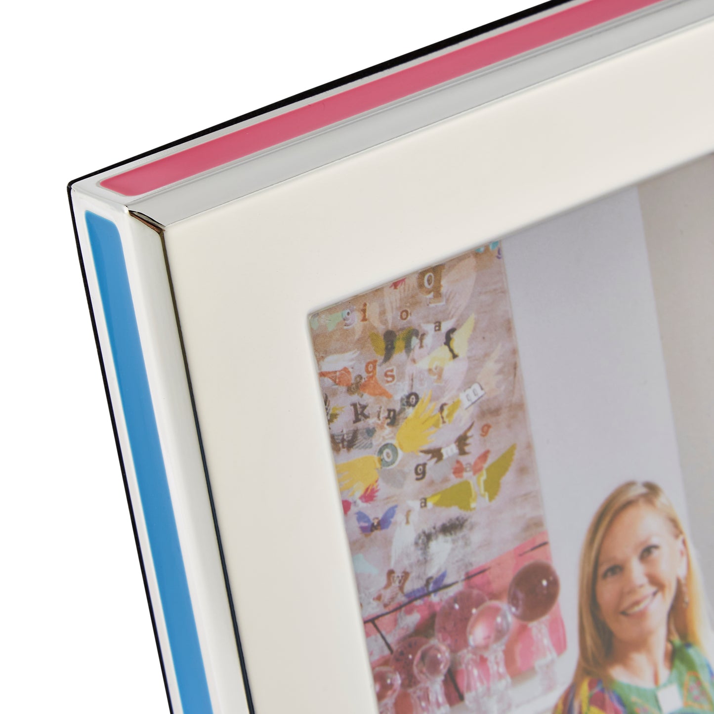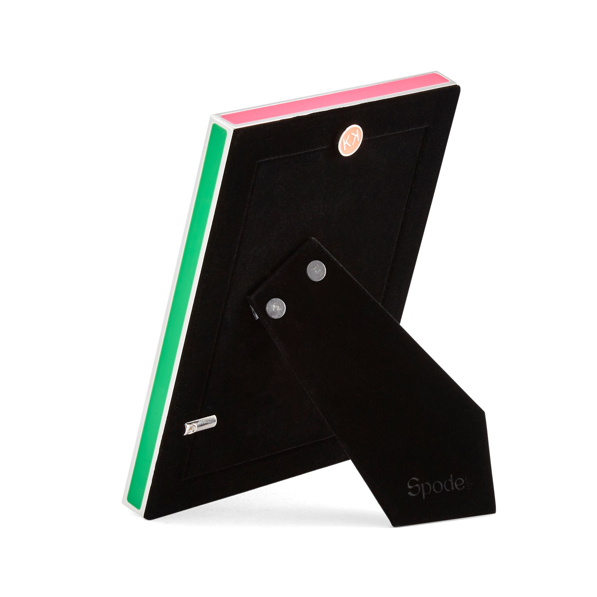 Add warmth and color to your space with this vibrant frame from Kit Kemp. Inspired by the colors and tropical foliage of Kit’s island retreat, the 4x6in silver-plated Cabana frame features four eye-catching enamel colors; turquoise, pink, green and yellow, around the edges. Classically designed with a modern twist, this frame adds an unexpected touch of color to your home. Pair with the matching frames in additional sizes or mix and match with other picture frames from the Kit Kemp by Spode collection.