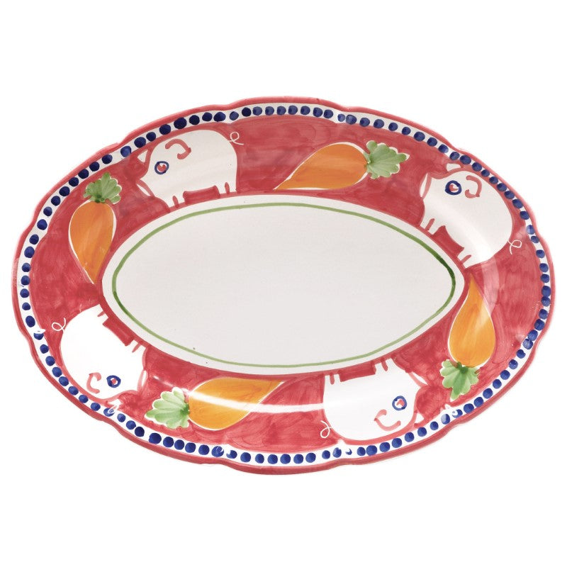 The colorful Campagna Porco features whimsical handpainted pigs and carrots.
