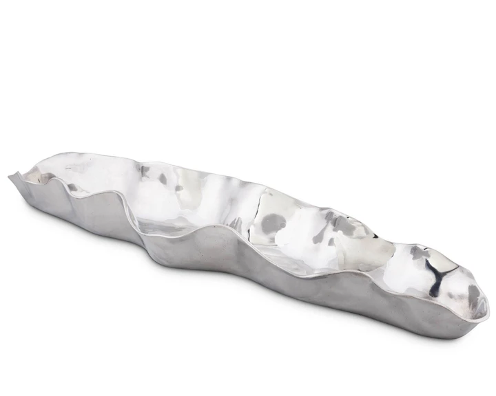 Add a touch of modern romantic fantasy to your home with our functional modern art-inspired Arthur Court platter. Constructed of shining aluminum with a modern wave design edge. Serve your favorites on it or display as the work of art it is anywhere in your home.