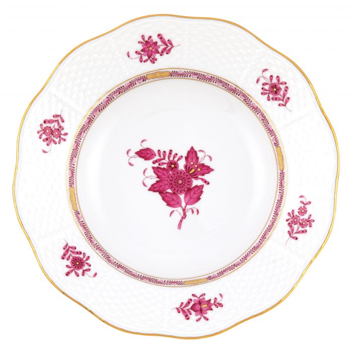 Derived from the intricate motifs and lush colors of Indian Basket, the Chinese Bouquet pattern was designed for Count Albert Apponyi in 1930. The Far East influence of ancient chinoiserie is apparent in the details of this vibrant pattern.