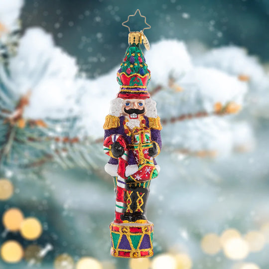 Complete with a Christmas tree crown, this nutcracker is truly a commanding presence! He's ready to make this holiday the best one yet with a candy cane staff and plenty of gifts.