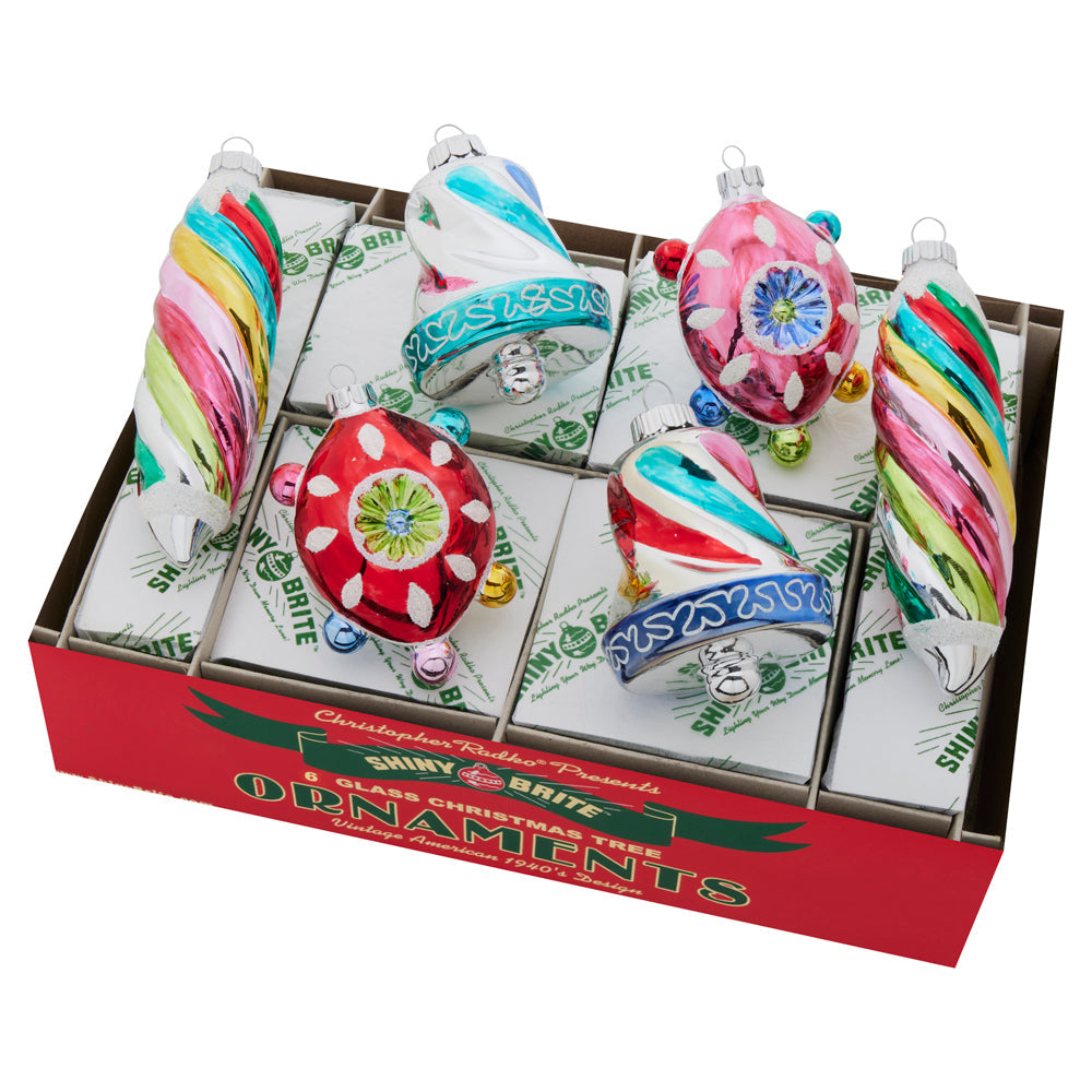 This collection of vintage-inspired glass ornaments is an amazing addition to any tree. Bringing colorful mixed shapes, this set is sure to shine.