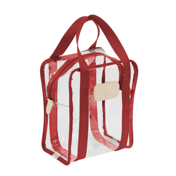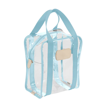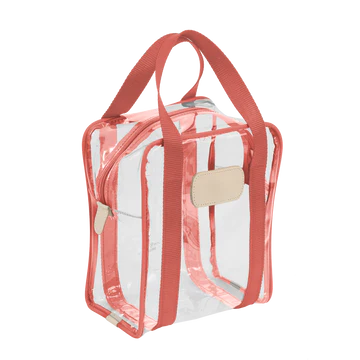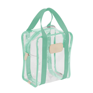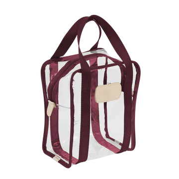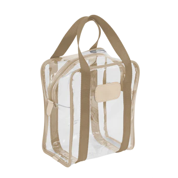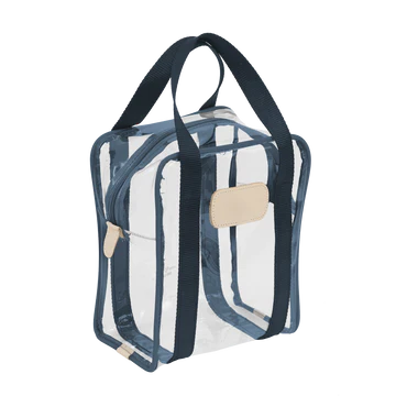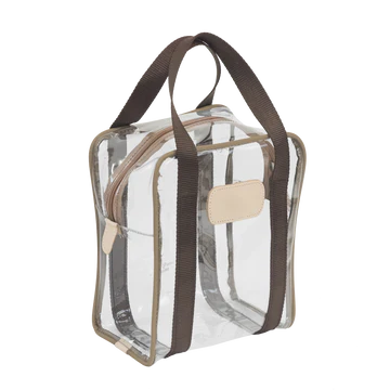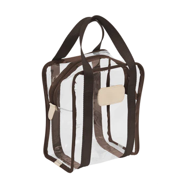 Clear Plastic material with Coated canvas Trim and a Natural Leather Patch