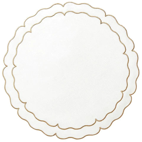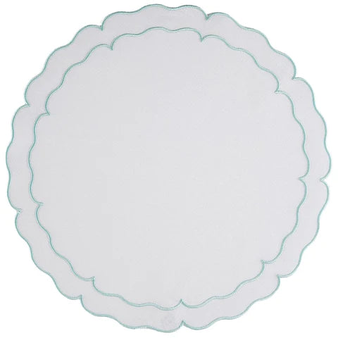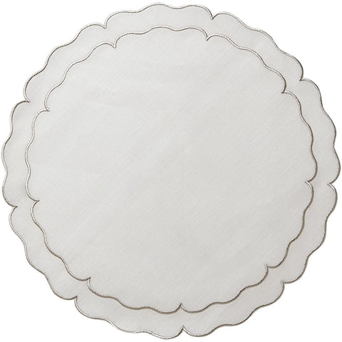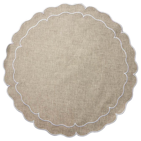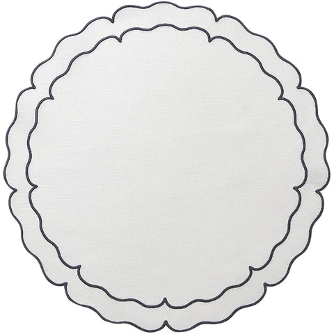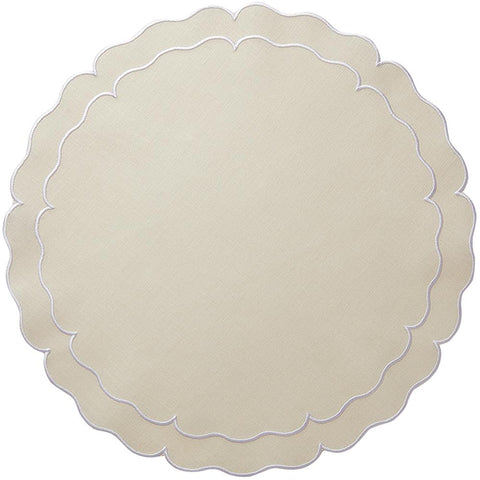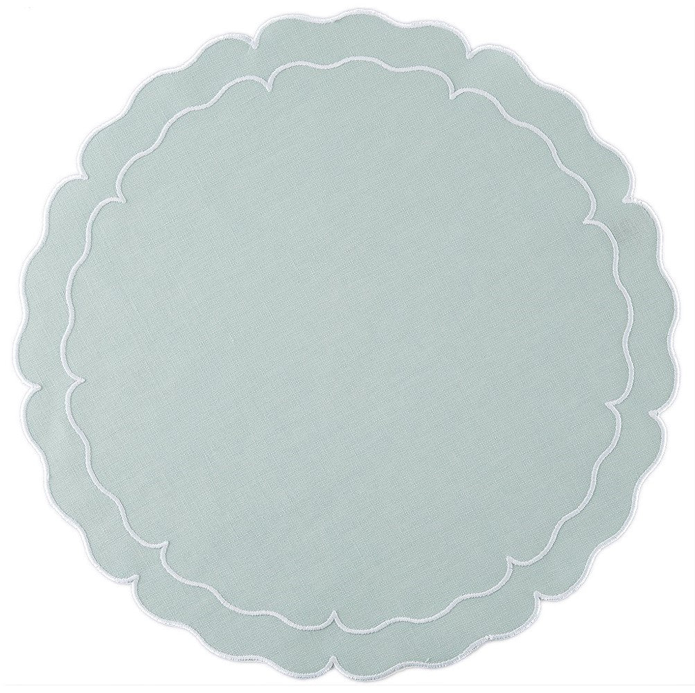 These exquisite mats are Made in Portugal of 100% pure linen and treated with a light acrylic coating. A beautiful double embroidered border follows the lines of the sophisticated and fabulous shapes. Linho linens are a dining essential as they are the perfect complement to any table setting, from casual to the most formal. Caring for the Linho Collection mats is quite easy. Simply wipe a spill clean with a damp cloth! It's just that effortless, as the mats are extremely stain-resistant. Should heavier spills occur, machine wash the mats on a cold/gentle cycle, air dry and press on the reverse side. Linho mats are designed to add a beautiful monogram but are just as exquisite without one.