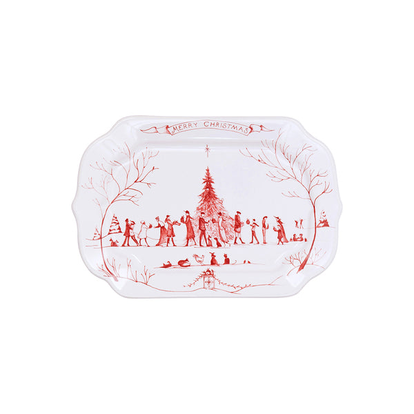 Our charming English countryside estate is snow-covered for the holidays! The perfect backdrop of your winter celebrations, these ruby red pieces are illustrated in great detail by our friend and renowned artist, Deborah Sears, and mix beautifully with our other Holiday collections. Made in Portugal. Dishwasher, freezer, microwave and oven safe.