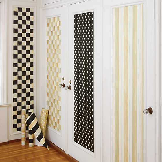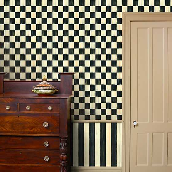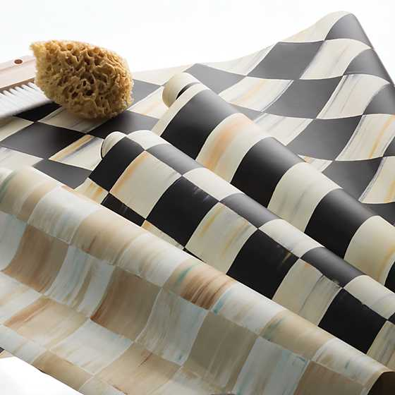 Add a dash of MacKenzie-Childs style to a living room accent wall, redo your kitchen to match your Courtly Check® collection, or wake up the bathroom or bedroom with Courtly Check® Wallpaper. Unpasted, washable, strippable, acrylic-coated paper. Made in the U.S. One double roll covers approximately 56 sq. feet.