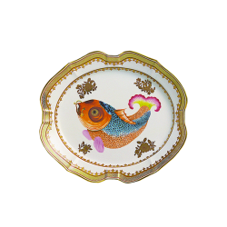 This carp platter adds sparkle an brilliance to your table with vibrant colors and 22 carat gold banding.