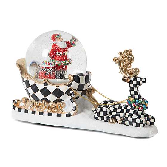 Our unique snow globes let it snow with style. The Dashing Through the Snow Globe features a hand-painted Santa riding high in a Courtly sleigh pulled by a Courtly Check® reindeer. Snow swirls around while a music box plays “Santa Claus Is Coming to Town.”
