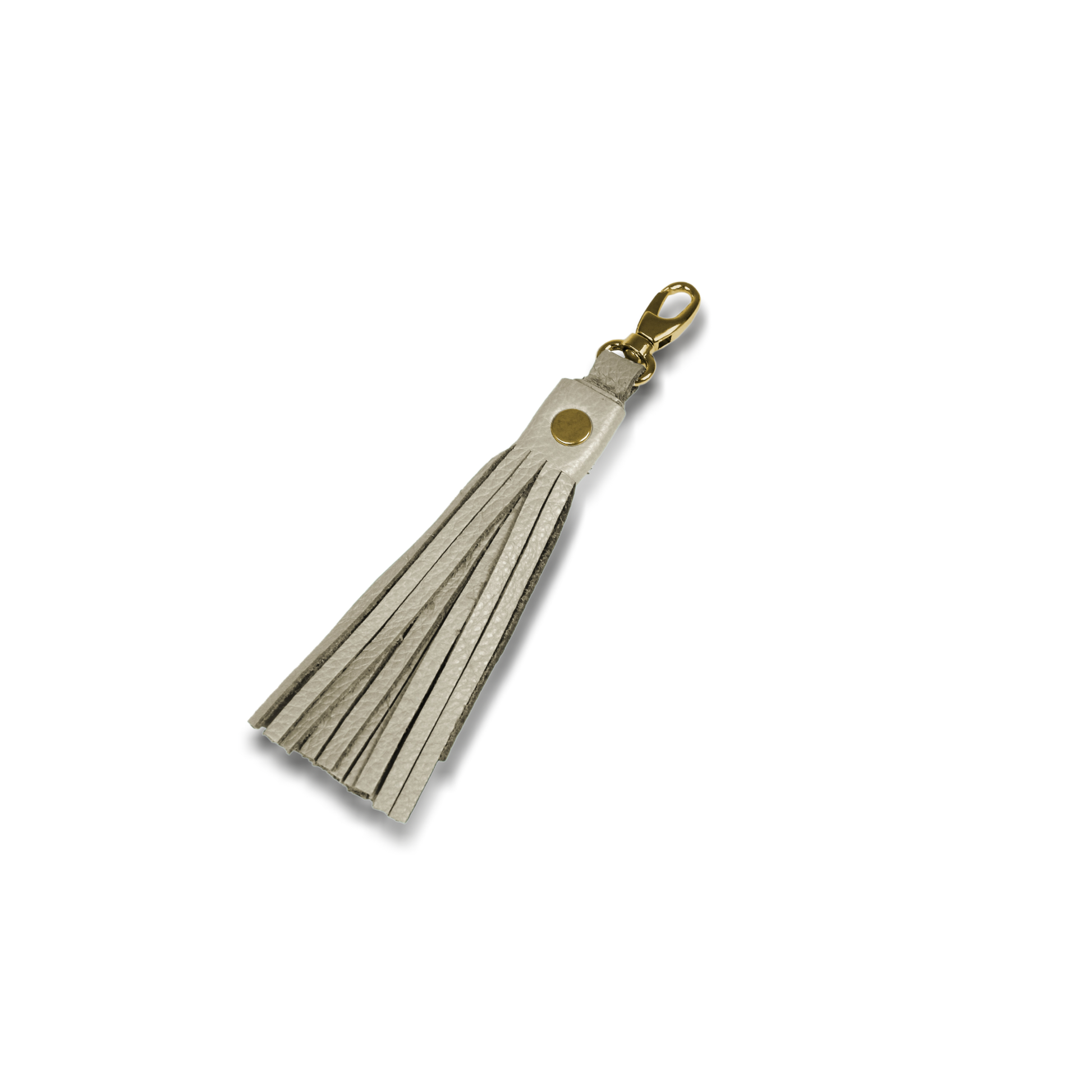 Dress up your bag or pouch with these all-leather tassels. Gold-colored hardware includes a spring clasp and rivet.