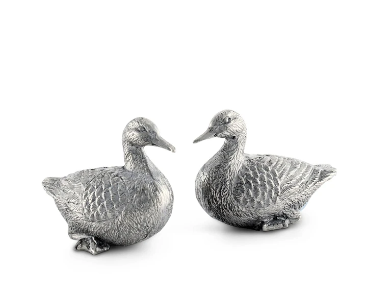 Set the mood for a morning hunt by using Vagabond House's Duck Salt and Pepper Set at the table. As if floating above the water, these beautiful mallards pose gracefully with their webbed feet overlapping underneath them.