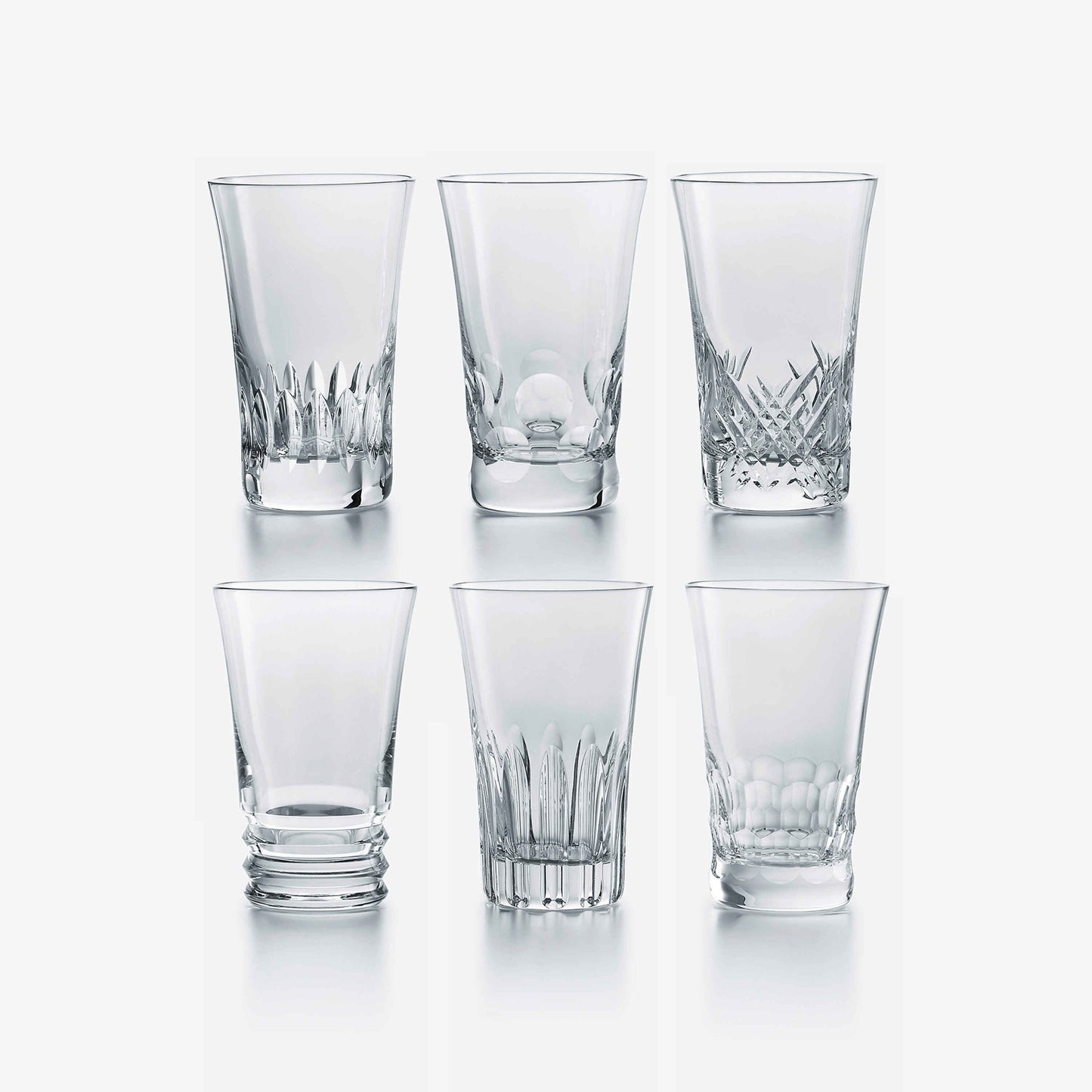 The new set of six highballs, each with a different creative pattern, for more Baccarat days. A set of crystal highballs offered in six iconic Baccarat cuts: Pontils, small diamond cuts, deep vertical and horizontal beveled cuts, and small flat cuts. The mix and match trend now offered in a new size is perfect for cocktails, long drinks, beers and more. The glasses are versatile and can be used for multiple daily occasions, day and night; morning, brunch, lunch, tea and cocktail time, with cold or hot beverages. This box contains 6 highballs: Beluga, Etna, Vega, Biba, Stella and Rosa measuring 5.5in.