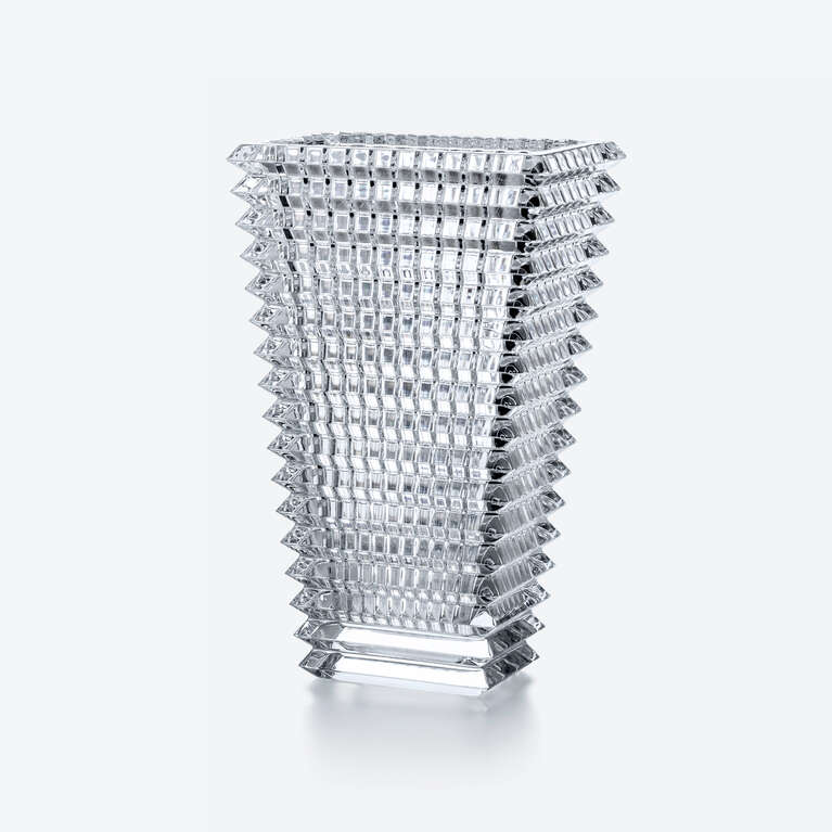 With bevel cuts conjuring perpetual movement, the Eye vase is a spiral of light. The Eye Vase fabrication produces a multitude of shades and shapes leaving scope for an infinite number of compositions for every taste and in every color.