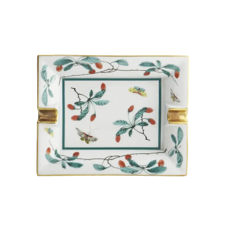 This graceful design, with its leaves, berries and butterflies, was derived directly from antique Chinese Palace porcelain. At a time when porcelain was valued because of its rarity, highly prized examples found their way to Europe, and into the hands of avid collectors. Often fitted with mounts of precious metal, they became gifts fit for kings. Many porcelain pieces produced in China during the Kangxi Period (1662-1722) had famille verte decoration — painted in transparent enamel colors, predominantly in shades of green and red. Mottahedeh’s collection is true to the eighteenth century spirit of this pattern.