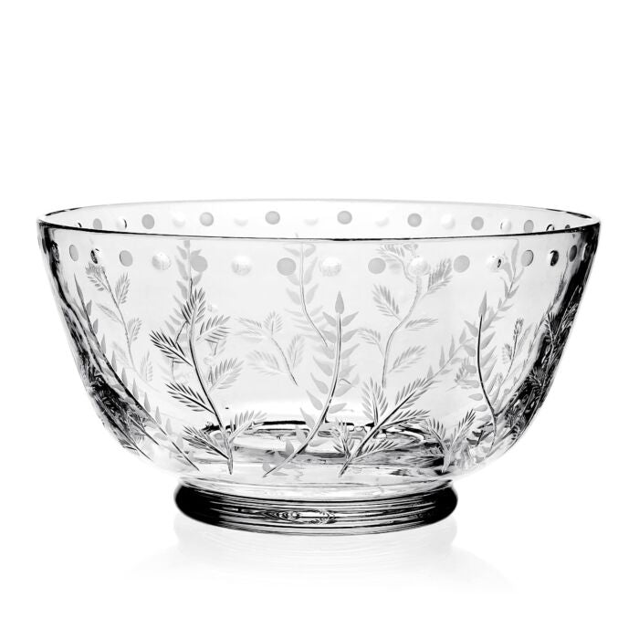 A charming hand cut leaf design on this classical bowl. A practical and perfect piece of handmade crystal glassware. This is a delightful handcut design taken from an original Regency design. A wonderful example of traditional craftsmanship on these practical and pretty pieces.