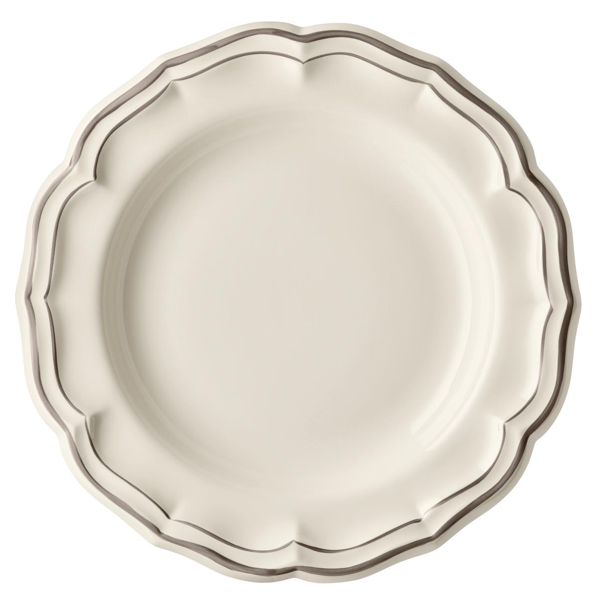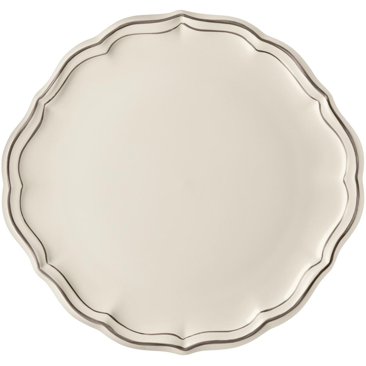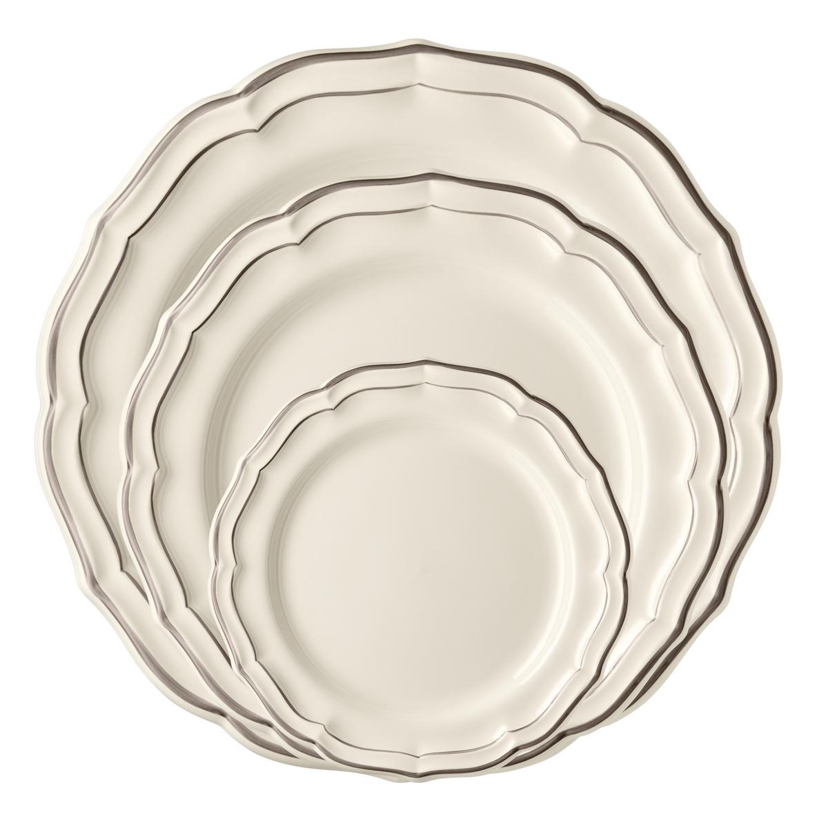 Timeless tableware, sleek and elegant, enhanced by hand-painted banding and the classic scalloped edge. Can be used on its own or combined with your favorite pattern.