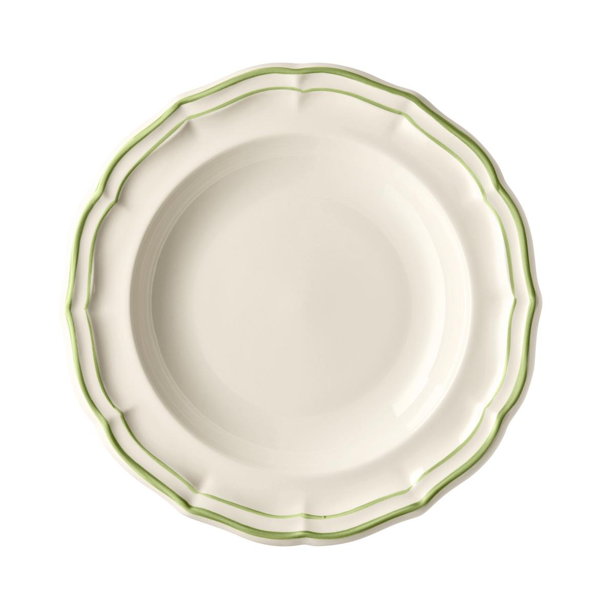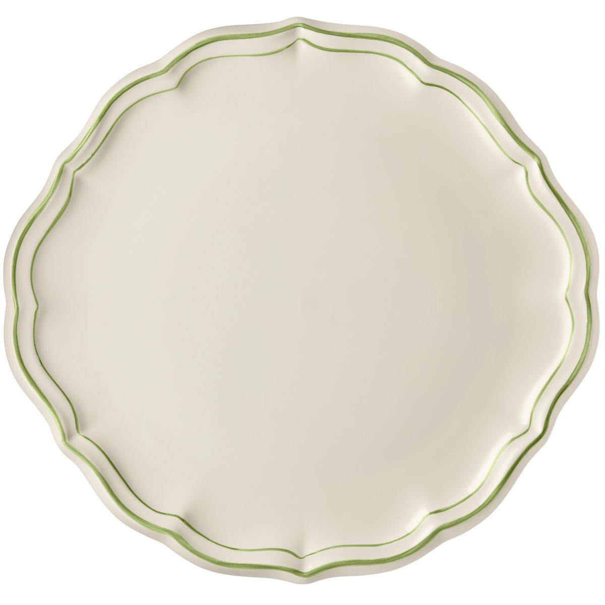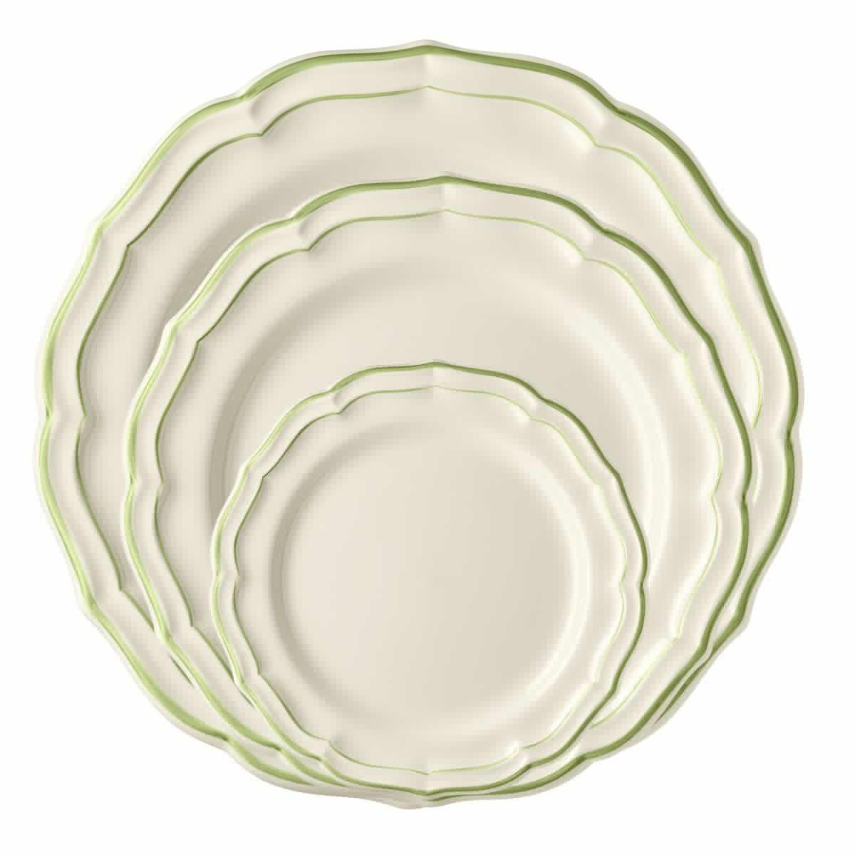 Timeless tableware, sleek and elegant, enhanced by hand-painted banding and the classic scalloped edge. Can be used on its own or combined with your favorite pattern.