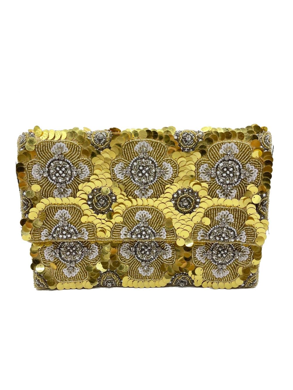 Add a touch of opulence to your boutique’s collection with our Gold Flower Sequined Beaded Clutch. This 9″ x 6″ clutch, meticulously handcrafted in India, features dazzling gold sequin flower patterns that shimmer with every movement. The exquisite beaded design elevates the clutch to a statement accessory, perfect for special occasions or upscale evening outings.