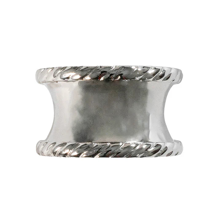 A finishing touch from one of our most popular collections, this napkin ring is forged with hammered stainless steel and bedecked with a tidy trimming of simple thread. Each handmade piece is polished to brilliance and pulls together any table setting to perfection.