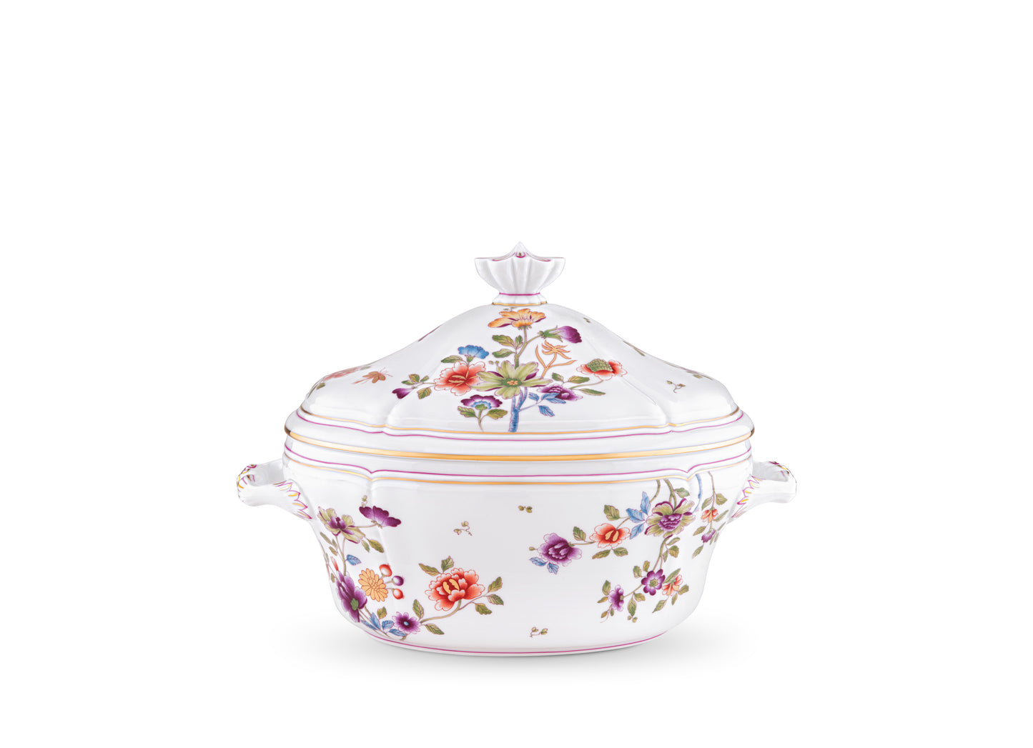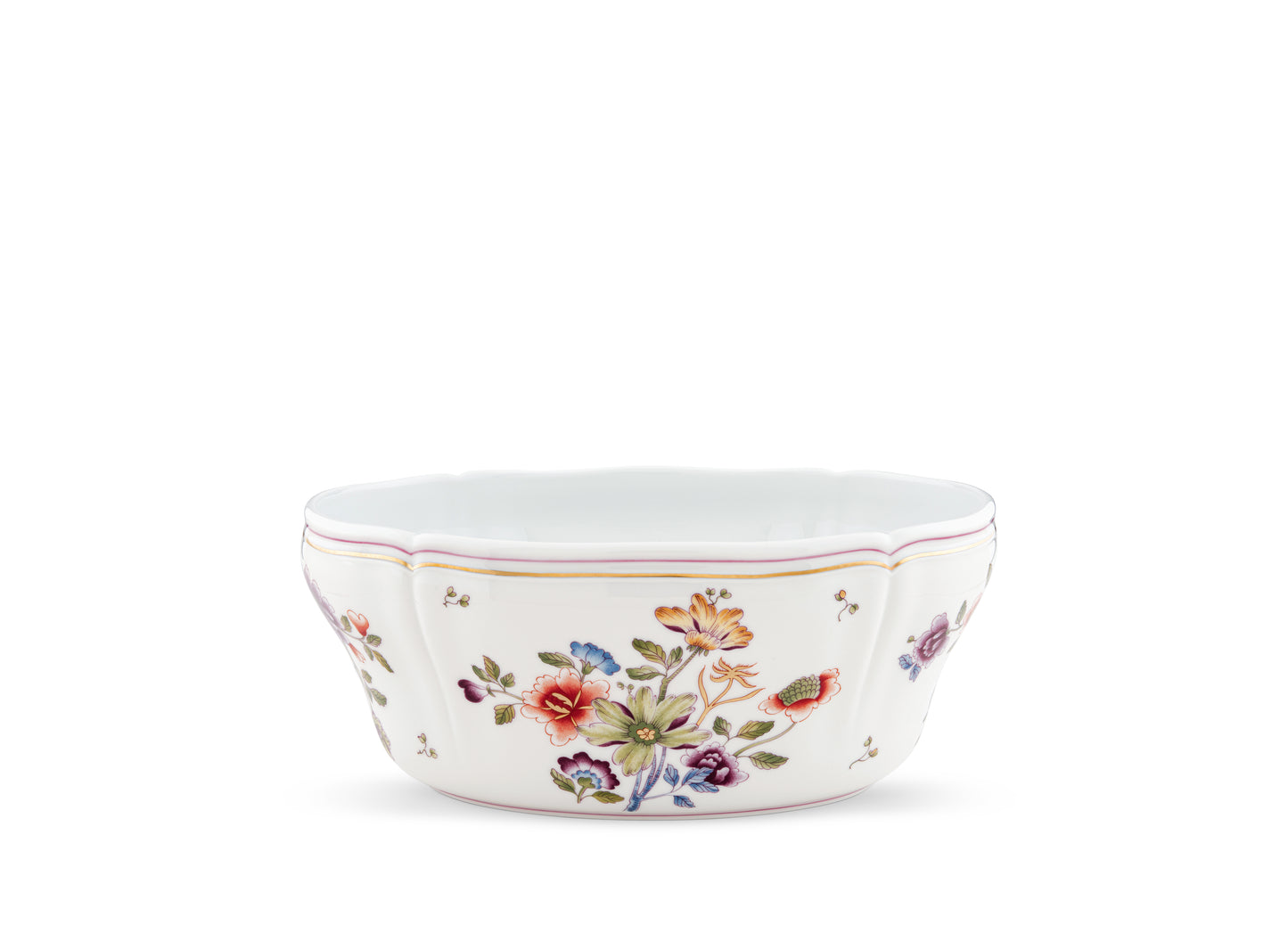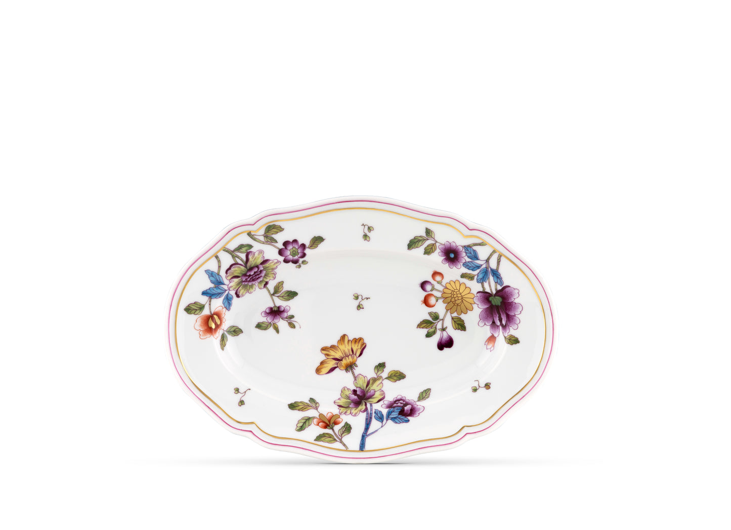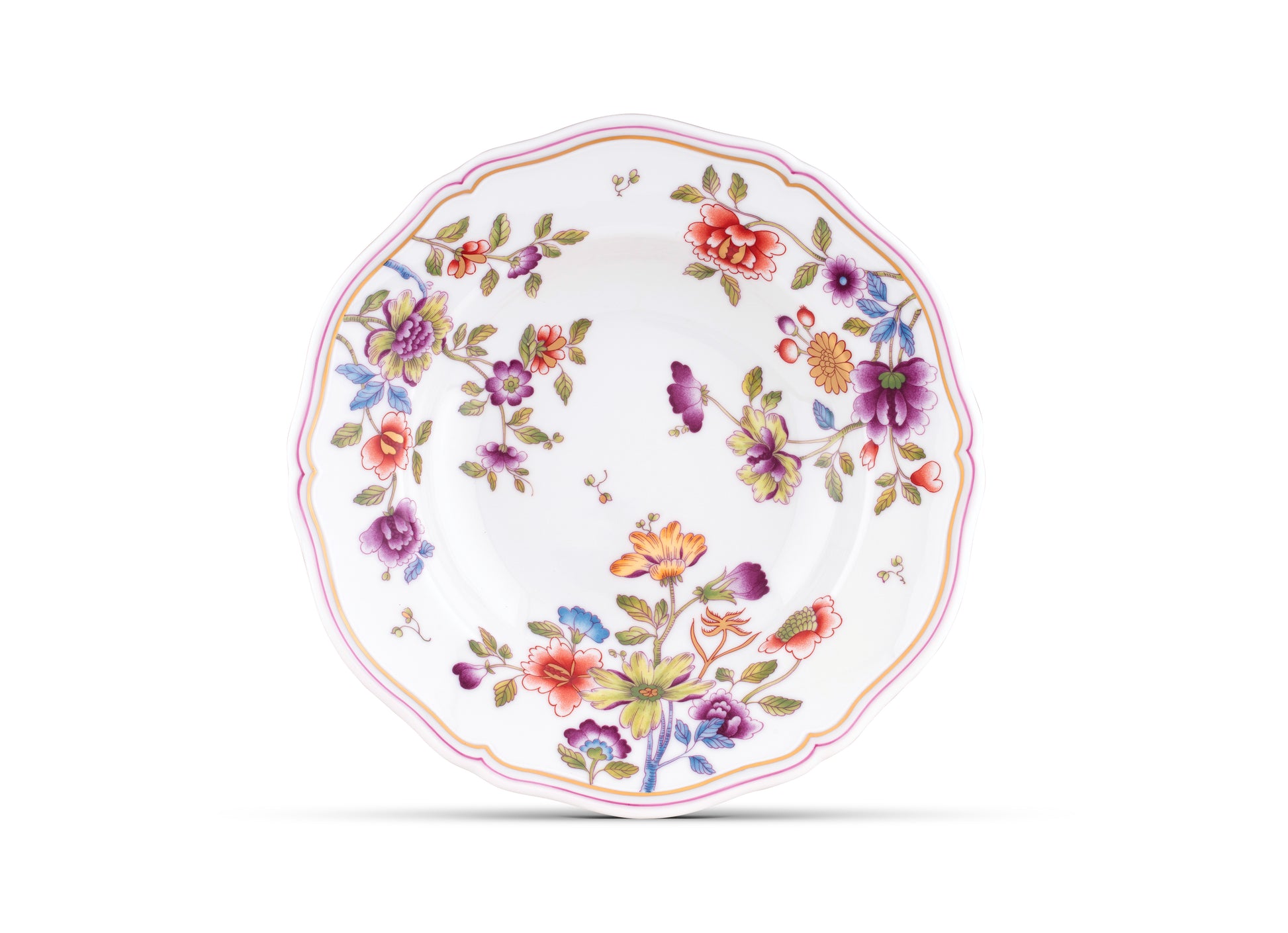 It is 1750 and Florentine noblewomen are expressing in their attire a renewed taste for floral découpage inspired by the decorations of Japanese kimonos. A newfound fascination with oriental taste is giving rise to our wonderful decoration dubbed "alla Coreana." The collection includes pure porcelain plates, cups and other tableware, items that evoke springtime, love and feminine beauty, harmoniously bound in the iconic shape of the Antico Doccia line. As these are ideas that traditional Asian iconography associates with the peony ("Mudan" in Chinese), the fragrant flower is featured throughout the collection. Scroll through all the porcelain in the collection below to recreate a table service that is both delicate and stylish, distinguished by rich Oriental charm.