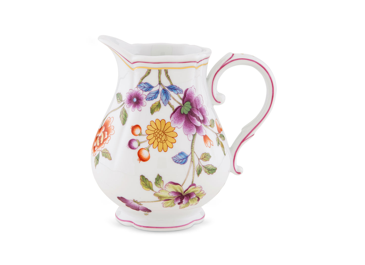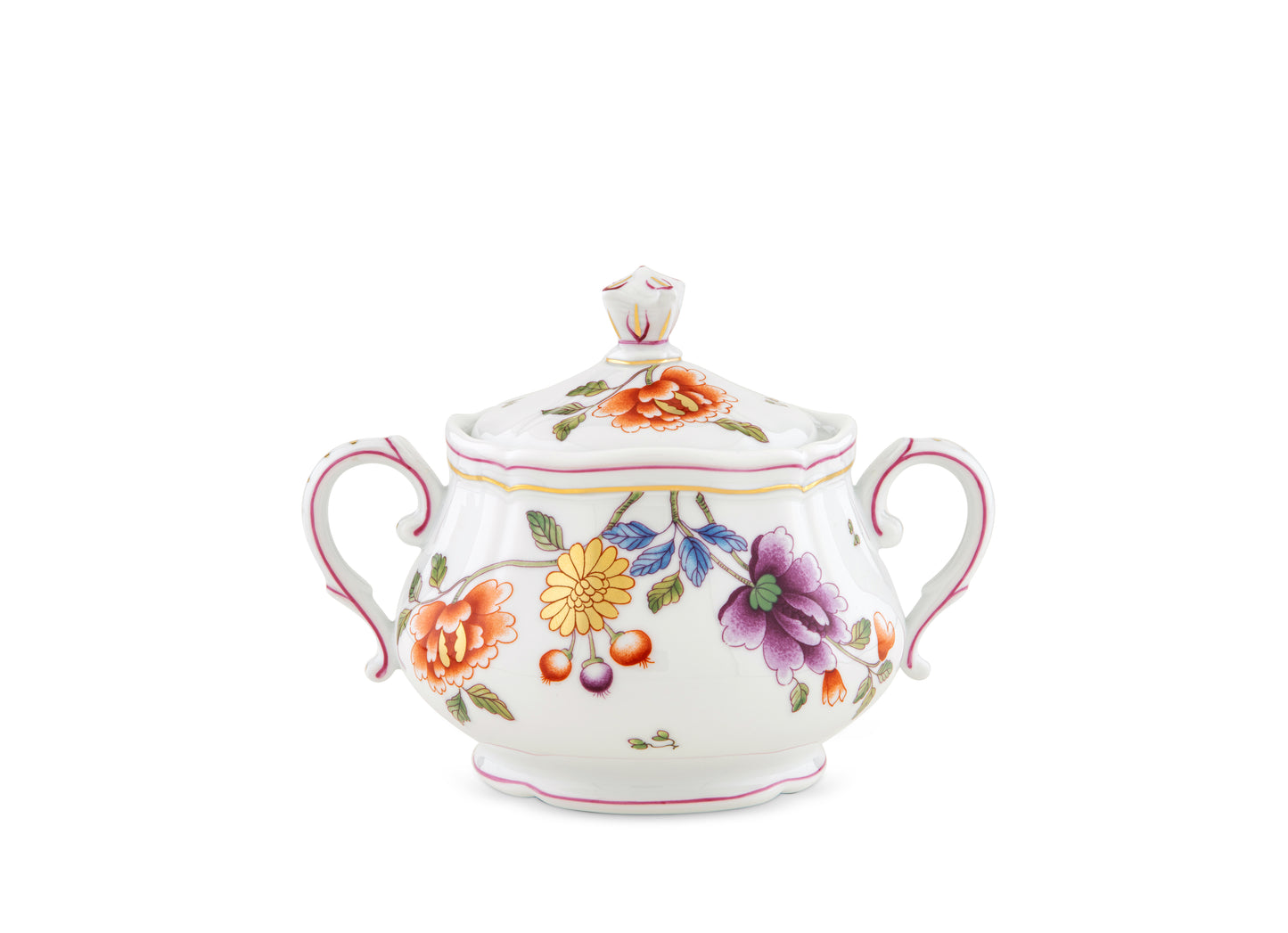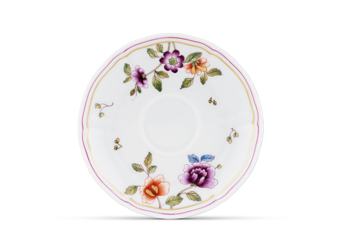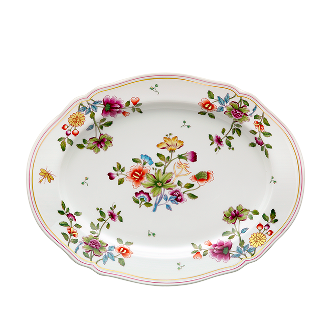 It is 1750 and Florentine noblewomen are expressing in their attire a renewed taste for floral découpage inspired by the decorations of Japanese kimonos. A newfound fascination with oriental taste is giving rise to our wonderful decoration dubbed "alla Coreana." The collection includes pure porcelain plates, cups and other tableware, items that evoke springtime, love and feminine beauty, harmoniously bound in the iconic shape of the Antico Doccia line. As these are ideas that traditional Asian iconography associates with the peony ("Mudan" in Chinese), the fragrant flower is featured throughout the collection. Scroll through all the porcelain in the collection below to recreate a table service that is both delicate and stylish, distinguished by rich Oriental charm.