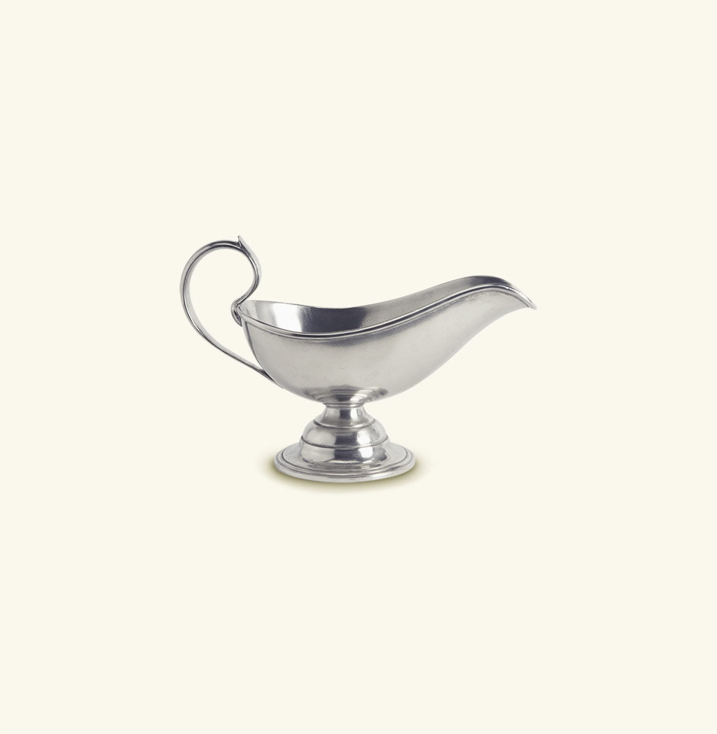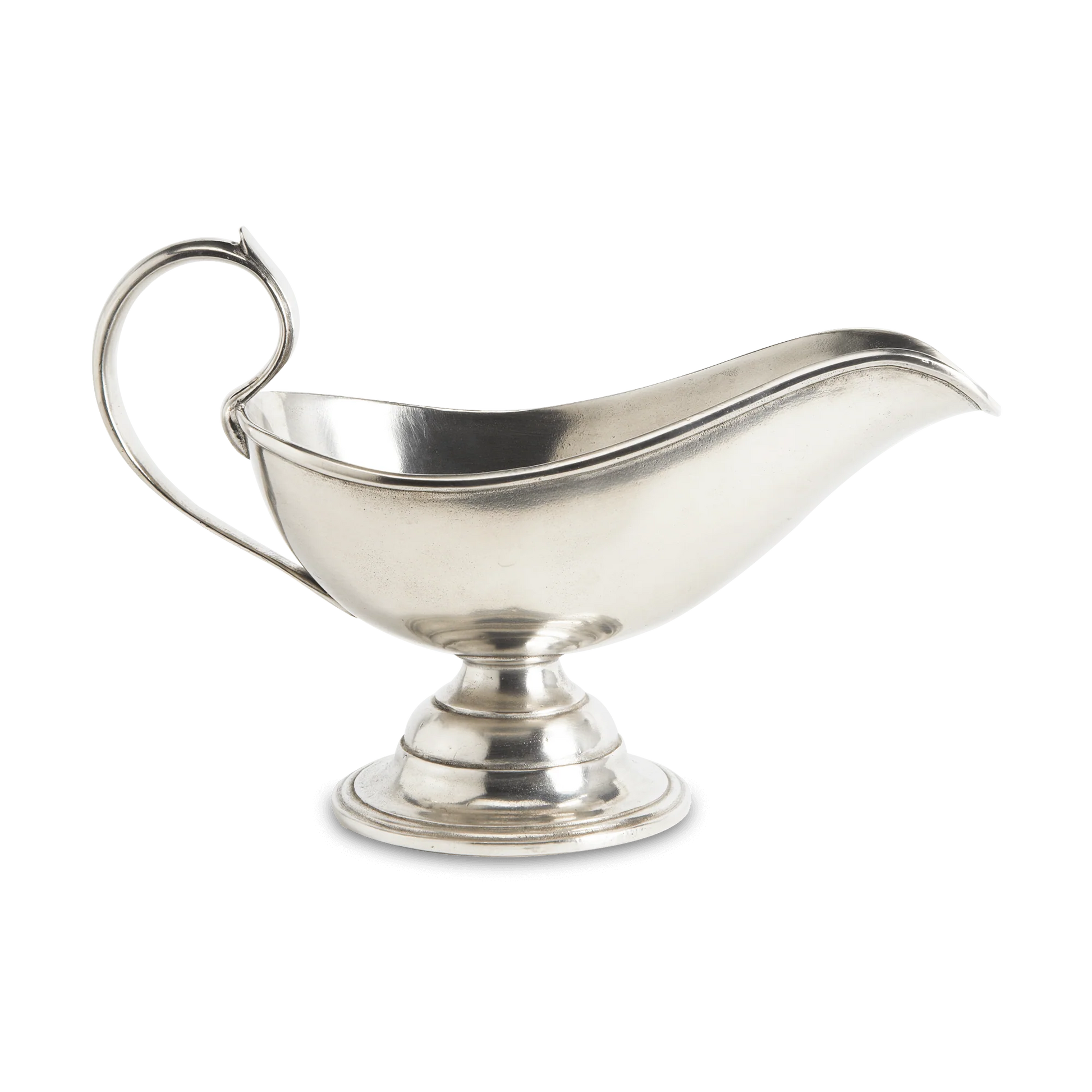 Our Italian pewter gravy boats are an eye-catching balancing act of form and function. Their beautifully flowing curves make an exquisite conveyance for delivering sauces, salsas, or gravies to eagerly awaiting plates.