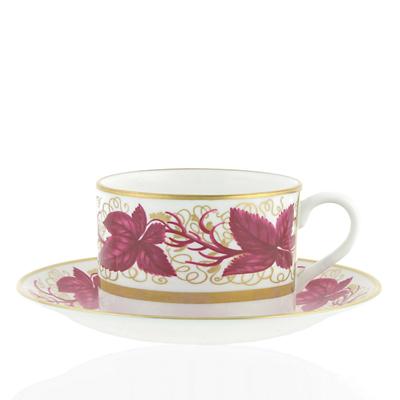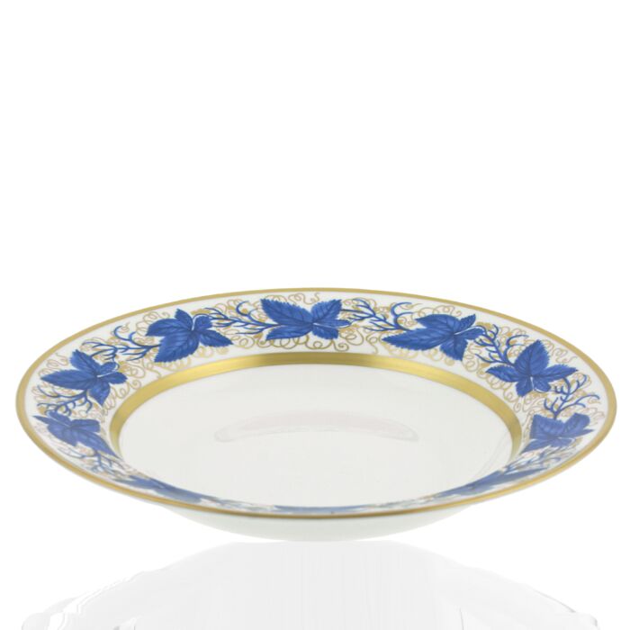 Hampton Court has a quintessentially English reference of wonderful vine leaves - vibrant powder blue or burgundy on trailing gold vine with fabulous burnished gold borders. Hampton Court is produced in the finest English Bone China, manufactured using traditional methods and qualities of the much respected English potteries.