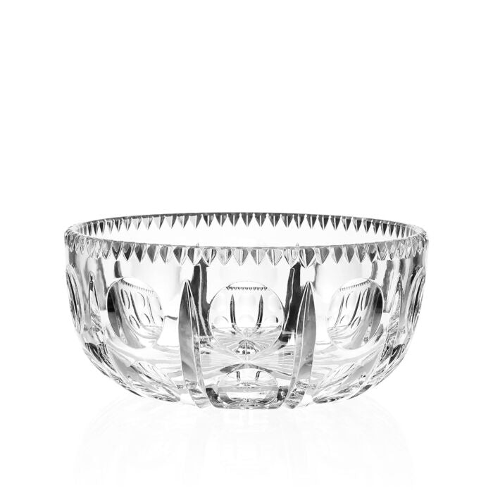 This Harlequine bowl with deep round cutting and notched cuts at the top is a lovely and versatile piece. The round oval cutting creates a wonderful optical illusion and is finished around the top with deep notched cutting. The Harlequine bowl is a beautifully cut piece but incredibly practical at the same time. It can be used for a small floral display or snacks on the bar.