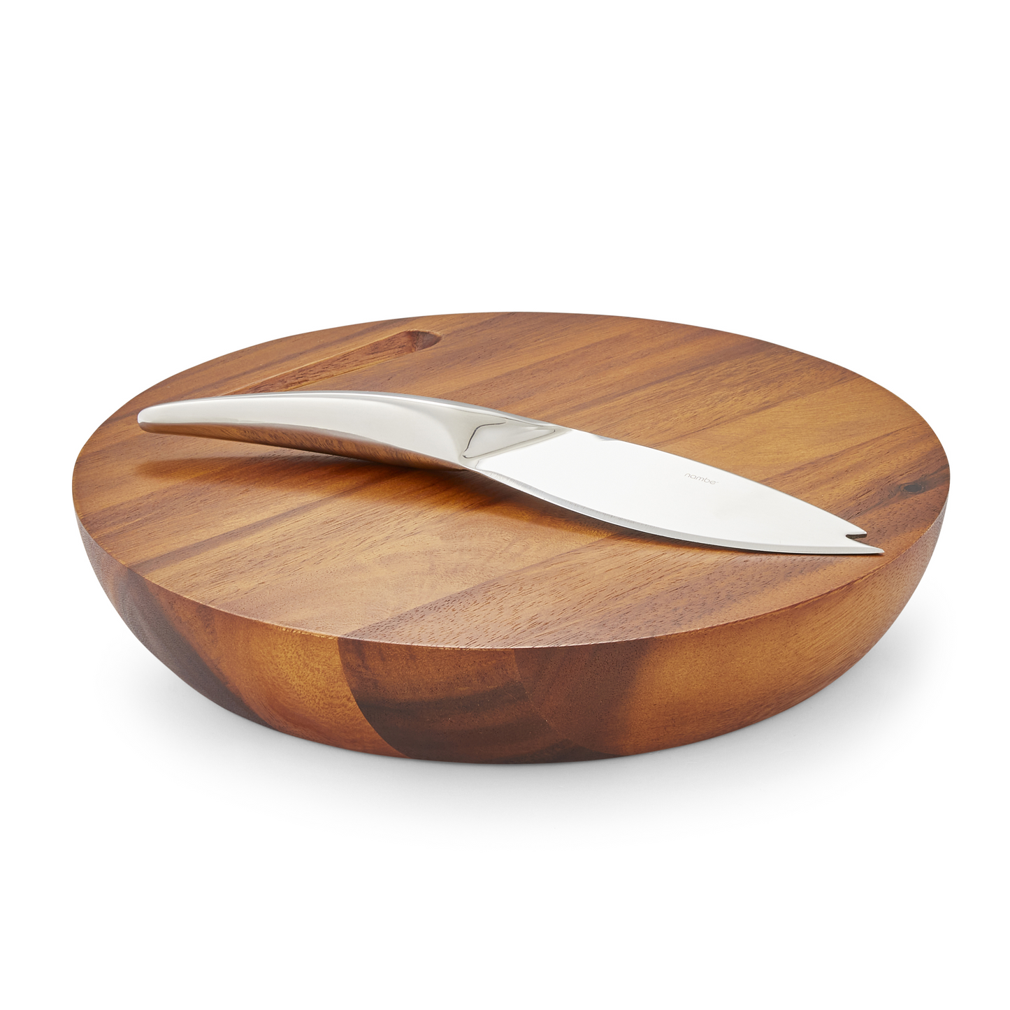 A smart and practical piece, the Harmony Cheese Board w/ Knife is perfect for slicing and presenting cheeses. The stunning base is polished to bring out the grain and the knife slides unobtrusively into the base.