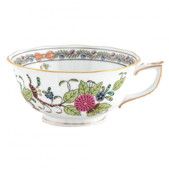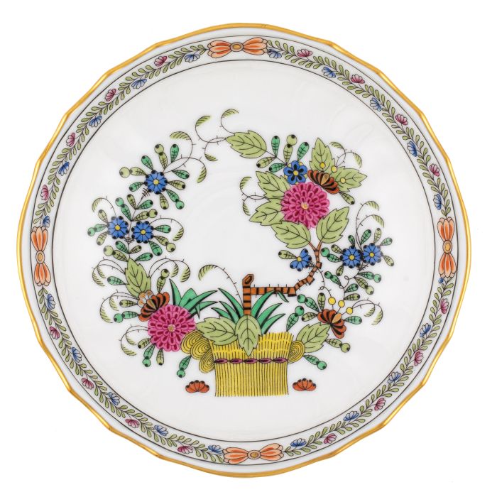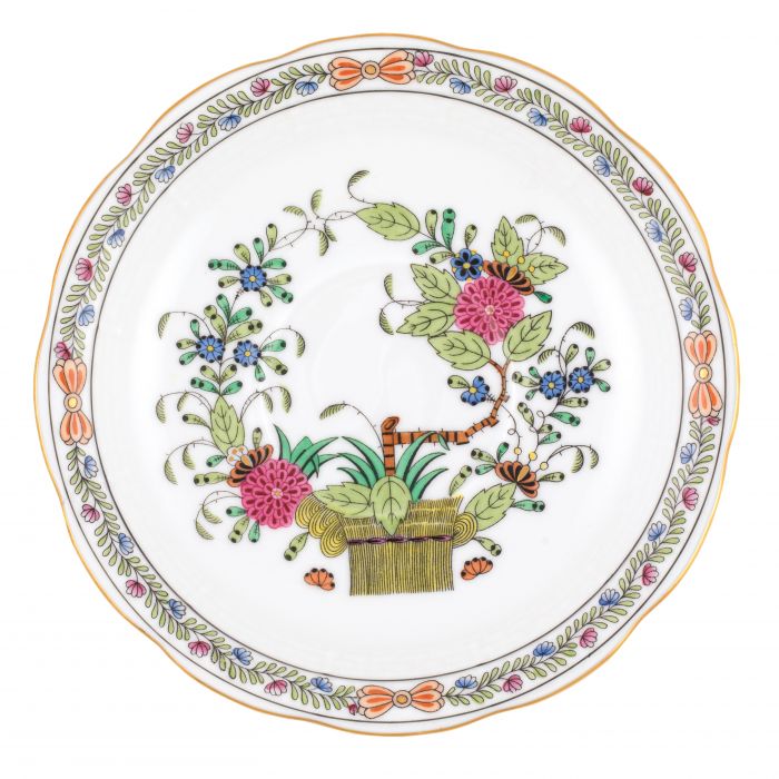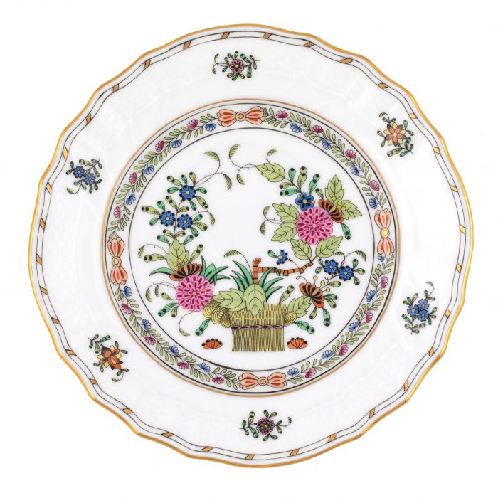 Introduced in the 1850s, this pattern's original name was "East Indies Flowers". Much of the Oriental porcelain exported to Europe was shipped via East Indian companies, and the Eastern influence is further reflected in the Japanese-style arrangements portrayed here.