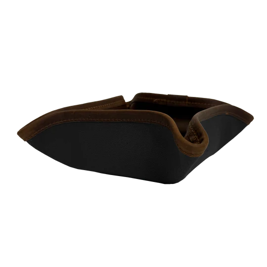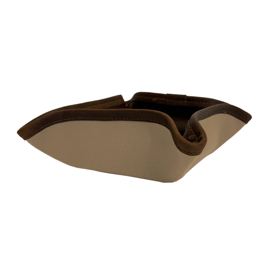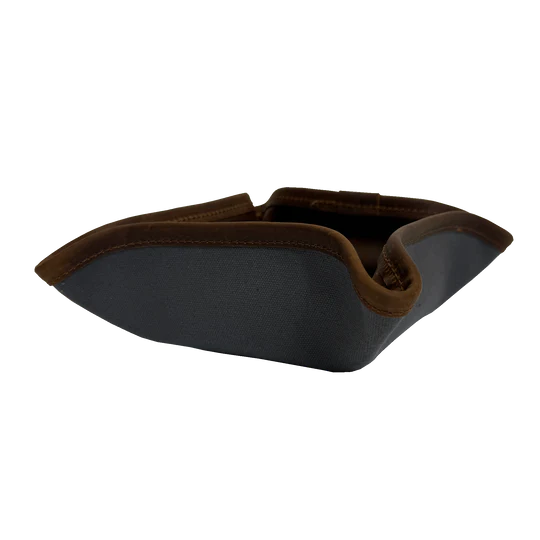A place for everything, and everything in its place! The JH Catch All keeps your keys, wallet, and essentials tidy at home and on the go. Snaps into a tray, packs flat, and is now available in the JH cotton canvas and oiled leather combo.