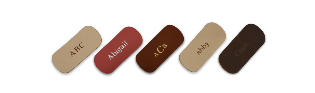 Initials, name, monogram or text can be debossed on our leather with a classic hot stamp or fun foil.