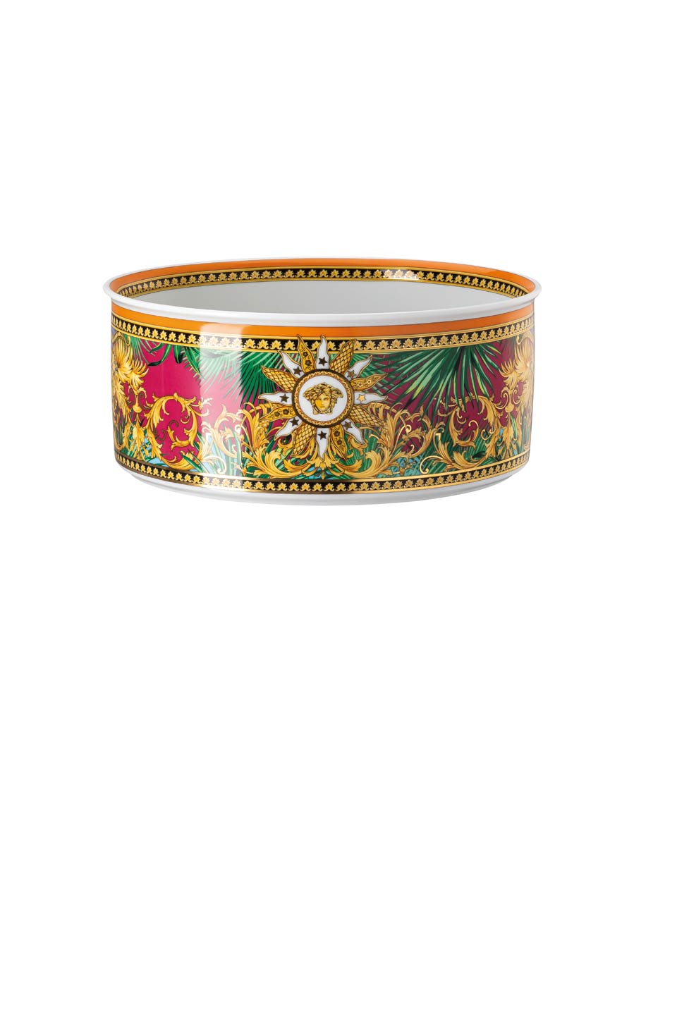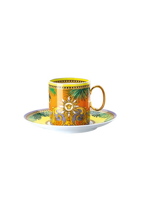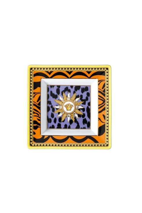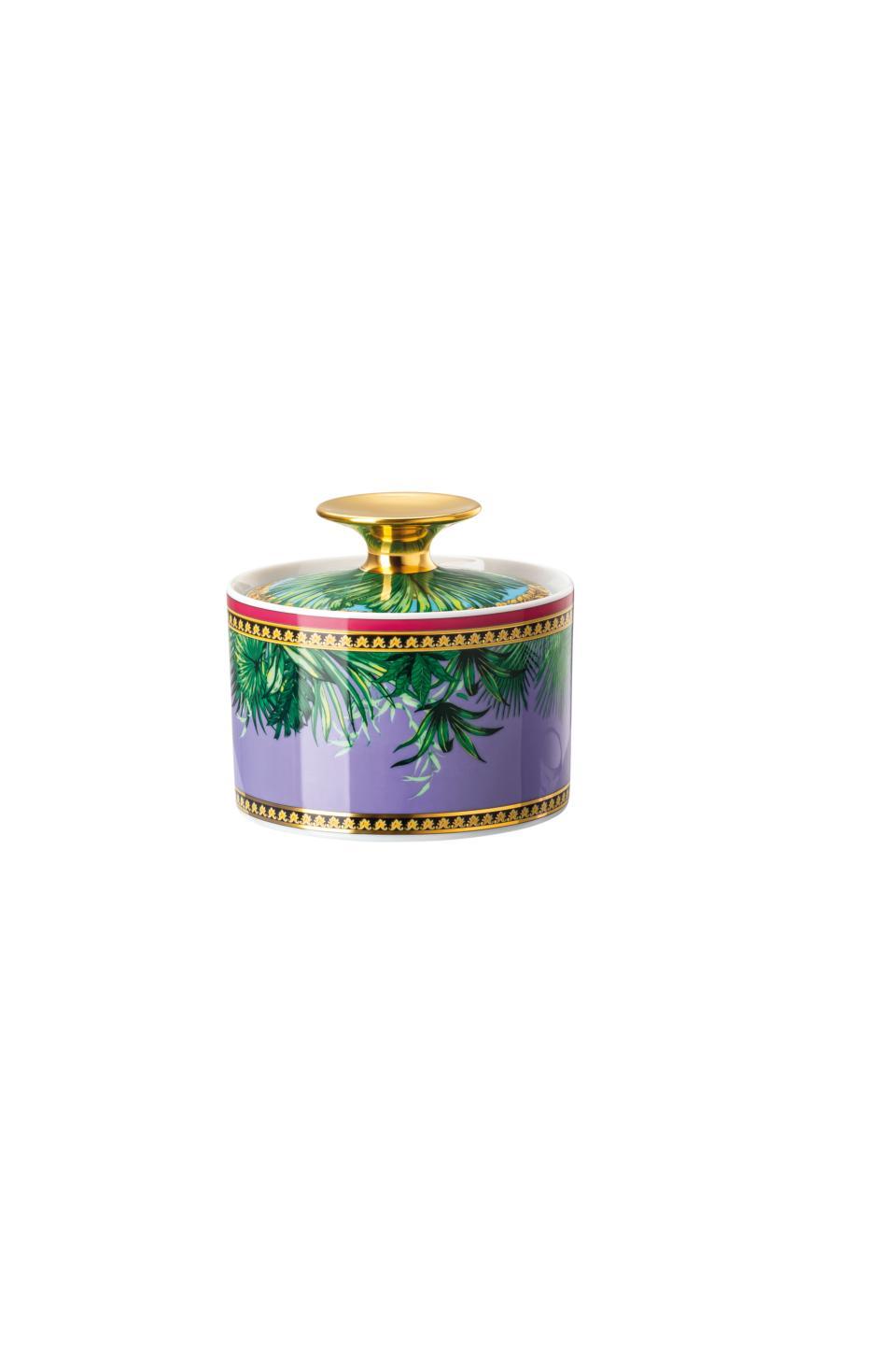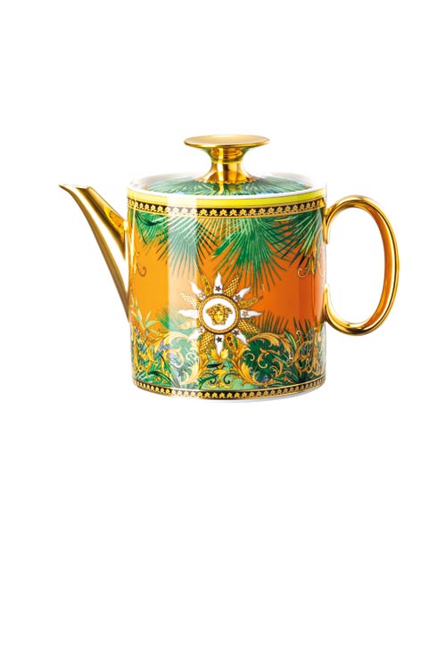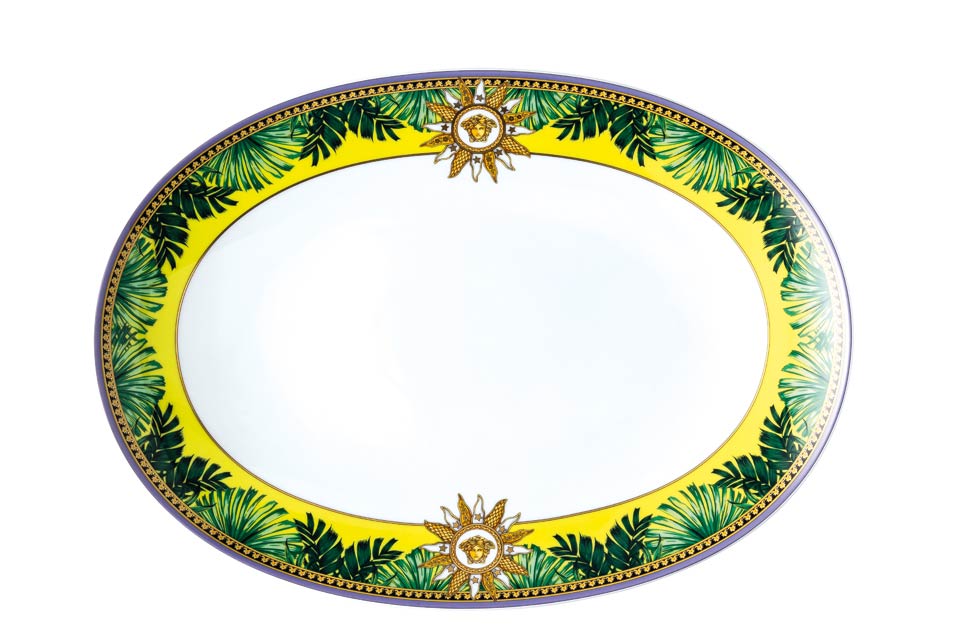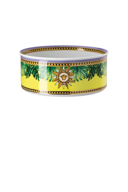 The iconic Jungle print elements fused with heritage Barocco motifs and gold-tone Medusa accents. The bold design draws inspiration from the legendary print famously reprised on the Versace Spring-Summer 2020 runway and the book “South Beach Stories”, an iconic photographic book by the Versace family.