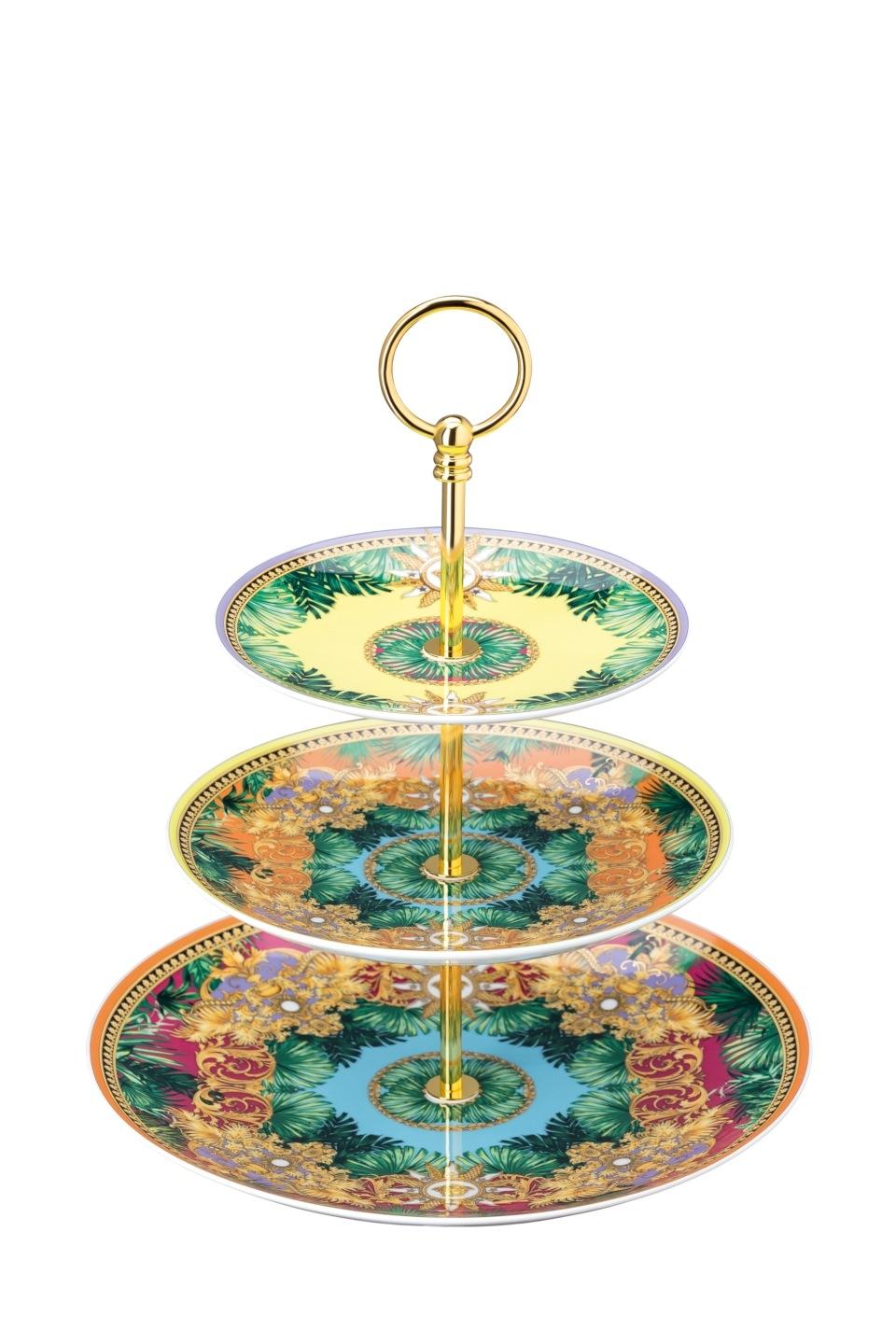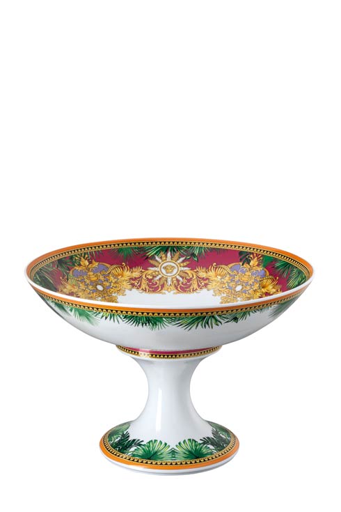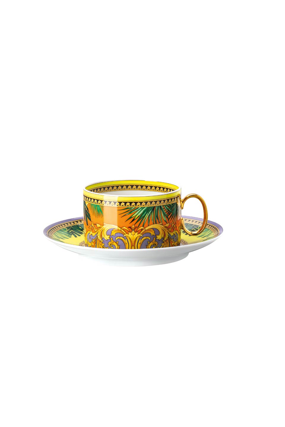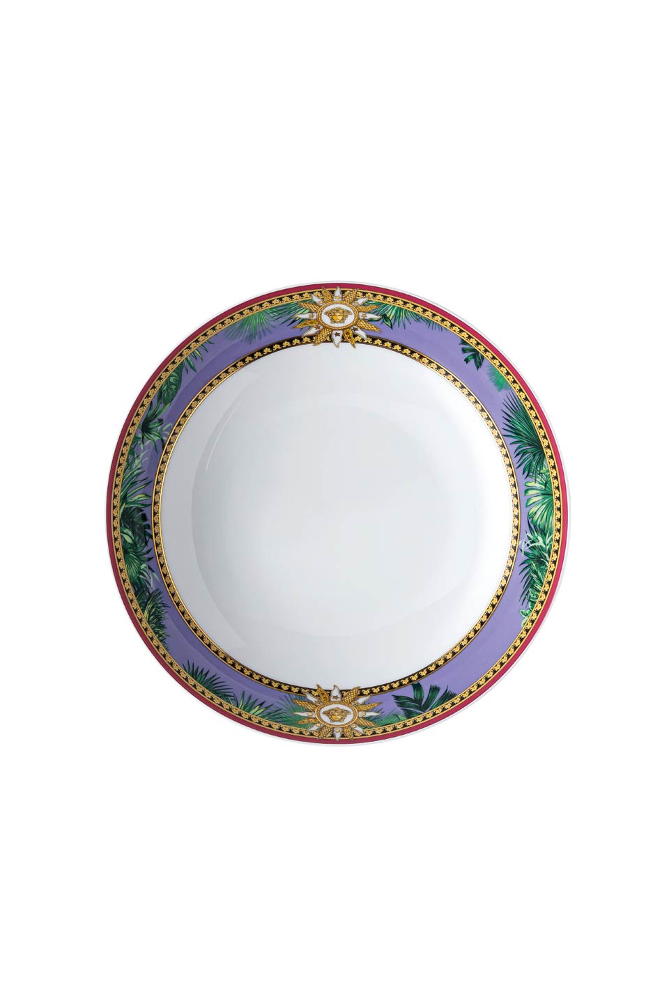 The iconic Jungle print elements fused with heritage Barocco motifs and gold-tone Medusa accents. The bold design draws inspiration from the legendary print famously reprised on the Versace Spring-Summer 2020 runway and the book “South Beach Stories”, an iconic photographic book by the Versace family.