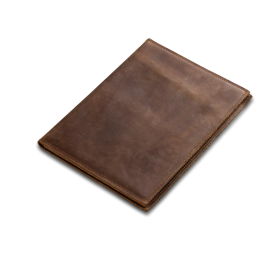 You mean business with this office essential. Oiled Leather inside and out is full of character. Too much character? Any marks or scratches in this leather can be easily rubbed out with leather conditioner. Includes a handy business card holder pocket inside. Comes with a standard 8 x 11 notepad.