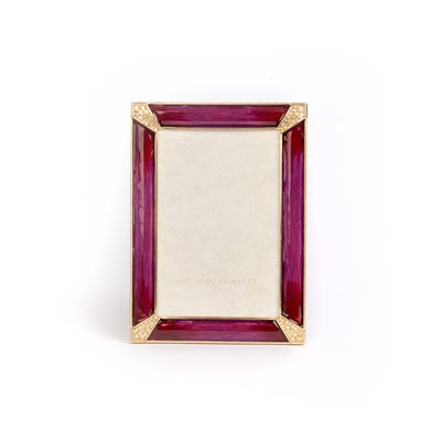 Loved ones always look that much lovelier in our Leonard Pave Corner 4" x 6" Frame. Forged in metals, painted by artisans with vibrant berry-hued enamels, and sparkling with Swarovski® crystal corners, pick a bouquet of classic frame colors for standout style.