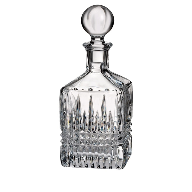 Place your favorite whiskey, brandy or bourbon onto a crystal pedestal with this Lismore Diamond Square Decanter and transform your tipple into a feast for your eyes as well as your palette. Beautifully crafted from fine crystal, the unrivalled clarity of this decanter elevates the rich, amber hues of any single malt or blended whiskey, producing a stunning spectacle for both you and guests to enjoy. Intricately adorned with the iconic upright and ring cuts of our contemporary Lismore Diamond pattern, this decanter is a strikingly modern addition to your home bar or liquor cabinet.