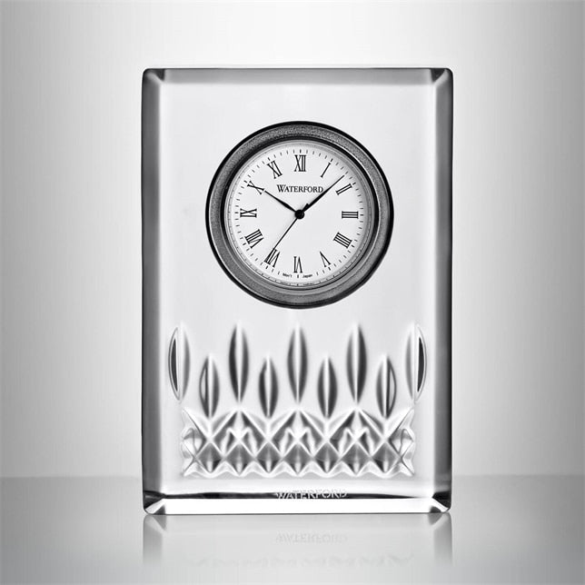 The Waterford Lismore pattern is a stunning combination of brilliance and clarity. Now your clock can be as sharp as your timekeeping. An elegant addition to any mantle or desk, the Lismore 4in Clock features an elegant cream clockface with Roman numerals and brass finish, set in fine, handcrafted crystal intricately detailed with Lismore's signature diamond and wedge cuts.