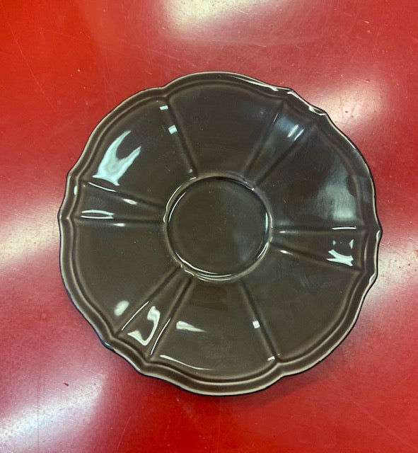 Maintenon Patine Chocolate Saucer from Faiencerie de Niderviller. Made in France. Maintenon is available in a variety of colors. Faience earthenware. Dishwasher and microwave safe.