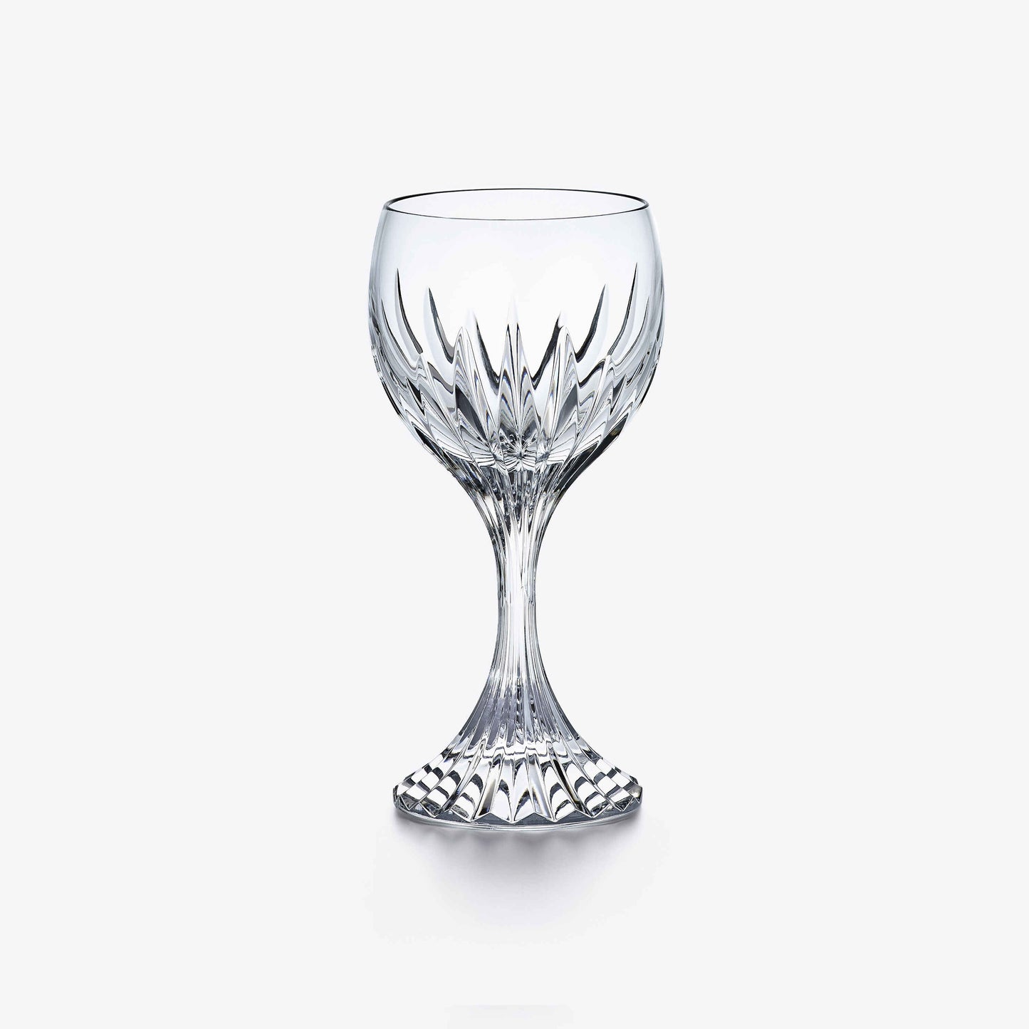 The Massena glass showcases Baccarat’s meticulous craftsmanship. Deep orgue bevel cuts are etched directly into the Clear crystal, radiating from the foot of the glass to the base of the wide bowl. This, in turn, puts the smoothness of the upper bowl in sharp relief. The intricate detailing gives the Massena glass the appearance of impressive heft, as if it were a modern-day chalice. The polished silhouette and prismatic qualities make it worthy of any festive occasion or special soirée. The glass is just one component of the iconic Massena bar and tableware collection, which encompasses wine glasses, highball glasses, tumblers, and a decanter. All pieces from the Massena collection share a scrupulously textural quality.