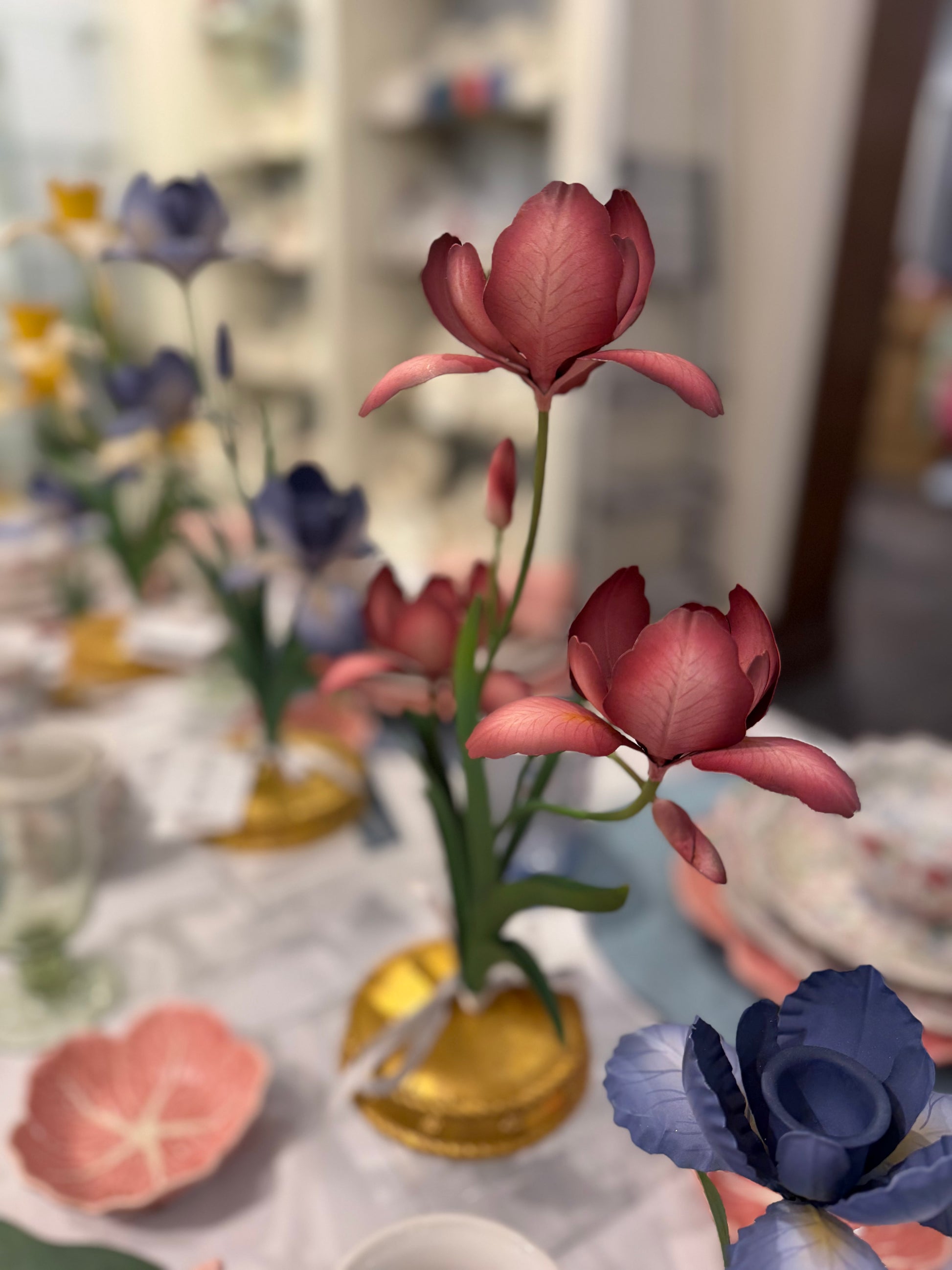 Spring is permanently sprung with our enchanting new collection of blooming statement pieces that bring elegance, joy, and a touch of whimsy to any tablescape. Made of intricately hand-painted metal with bright gold accents trimmed in our iconic Berry & Thread motif. Petals and leaves can be gently adjusted into any postures you like best.